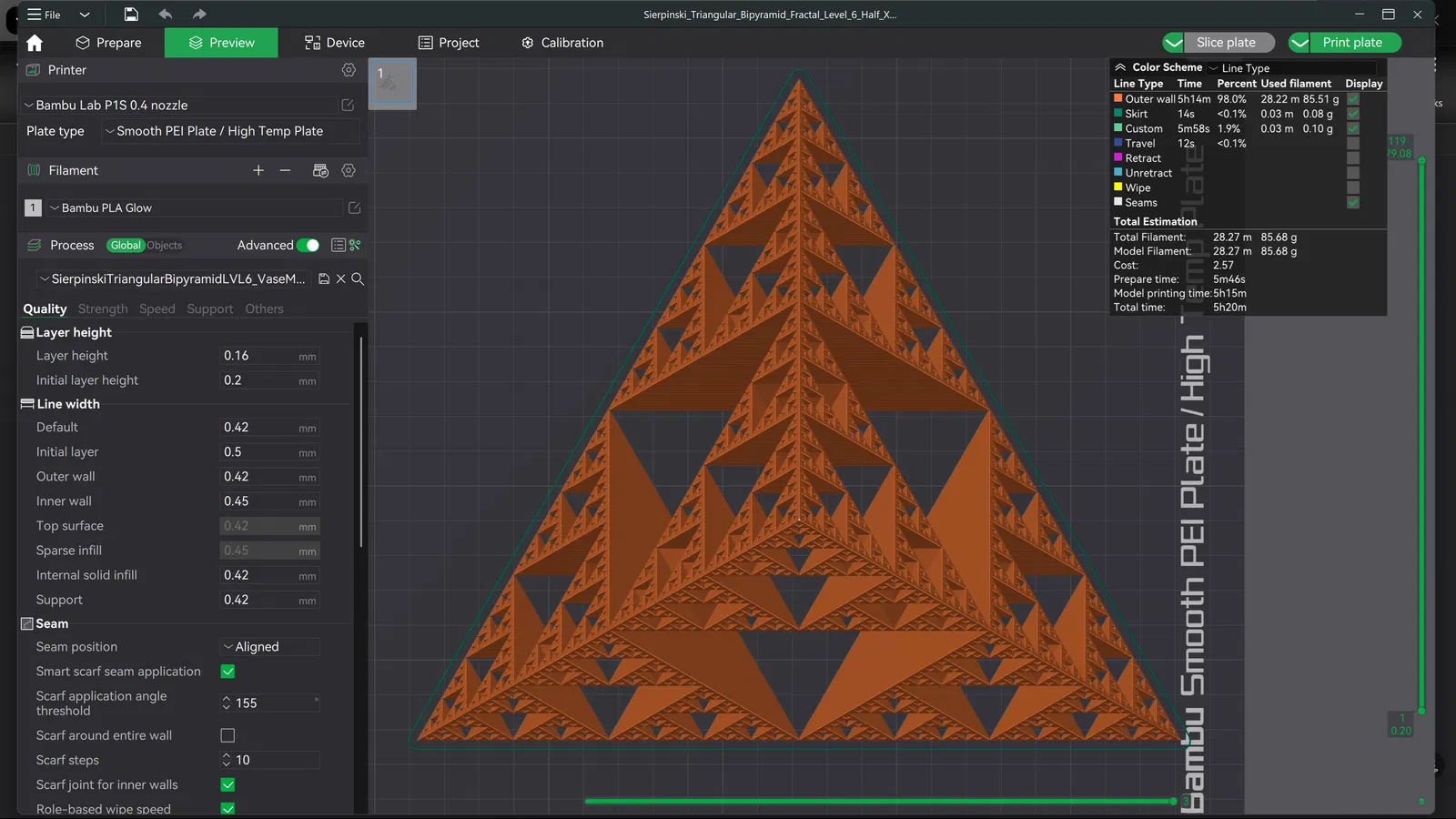 Tôi đã đính kèm một tệp 3MF để in một kim tự tháp đơn, đại diện cho một nửa của cấu trúc tự đồng dạng hoàn chỉnh. Để có được thiết kế fractal đầy đủ, hãy in cả hai nửa và dán chúng lại với nhau. Hoặc, bạn có thể chỉ in một nửa như một kim tự tháp độc lập—nó mang lại một góc nhìn độc đáo của riêng mình!