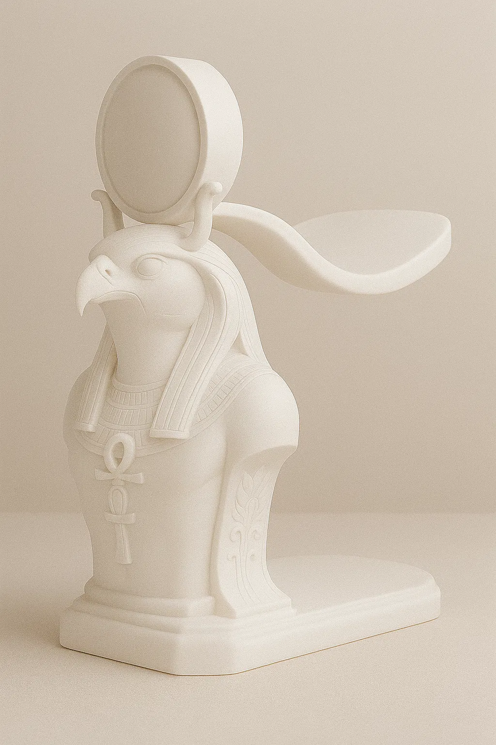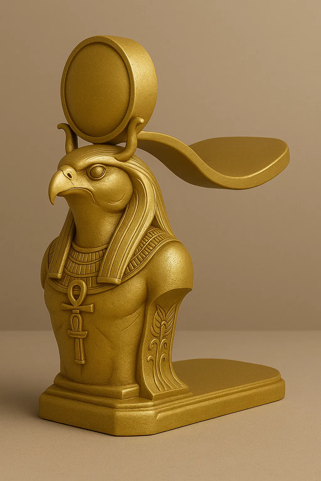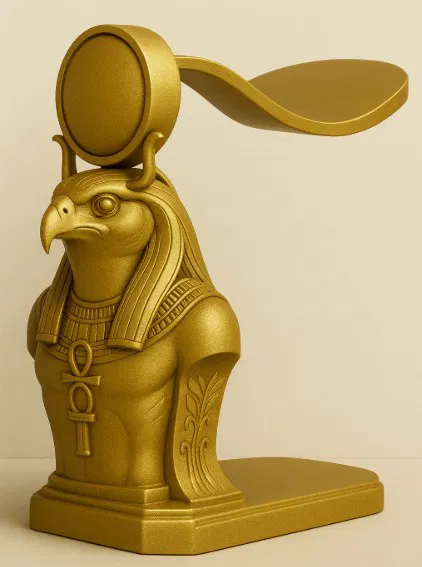 Chân đế tai nghe vàng óng lấy cảm hứng từ thần Ra, kết hợp phong cách Ai Cập cổ đại với công năng hiện đại. Hình dáng bust mạnh mẽ giữ tai nghe một cách duyên dáng, trong khi vòng cung phía sau được tạo hình hoàn hảo để đỡ tai nghe mà không bị trượt.