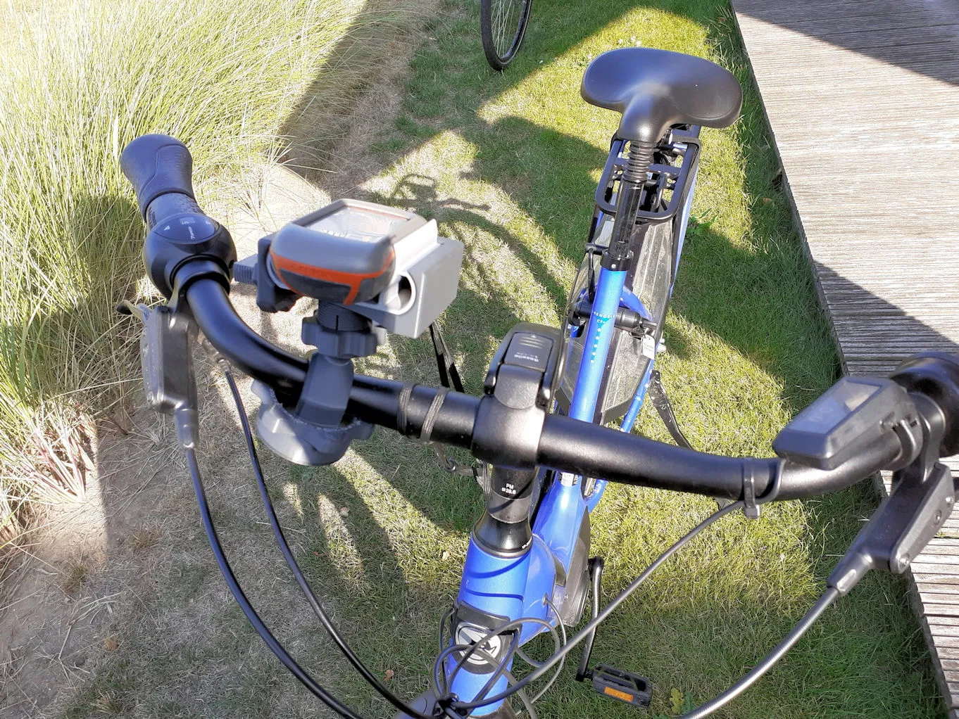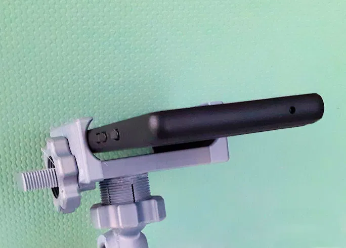 Đặt đầu bi (Klemme52.stl) của giá đỡ điện thoại lên ghi đông và gắn phần đỡ (Stuetze.stl) vào đó.
