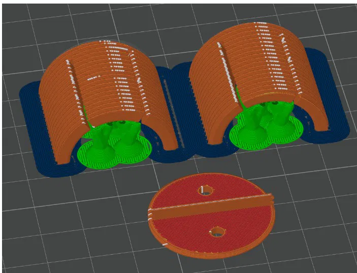 - file: HalterKlemme.stl, HalterStat.stl, Mutter30x13.stl, MutterM26.stl độ cao lớp 0.12 mm, 4 vòng tường, 15 % mật độ ruột