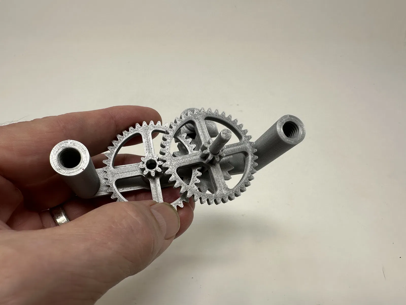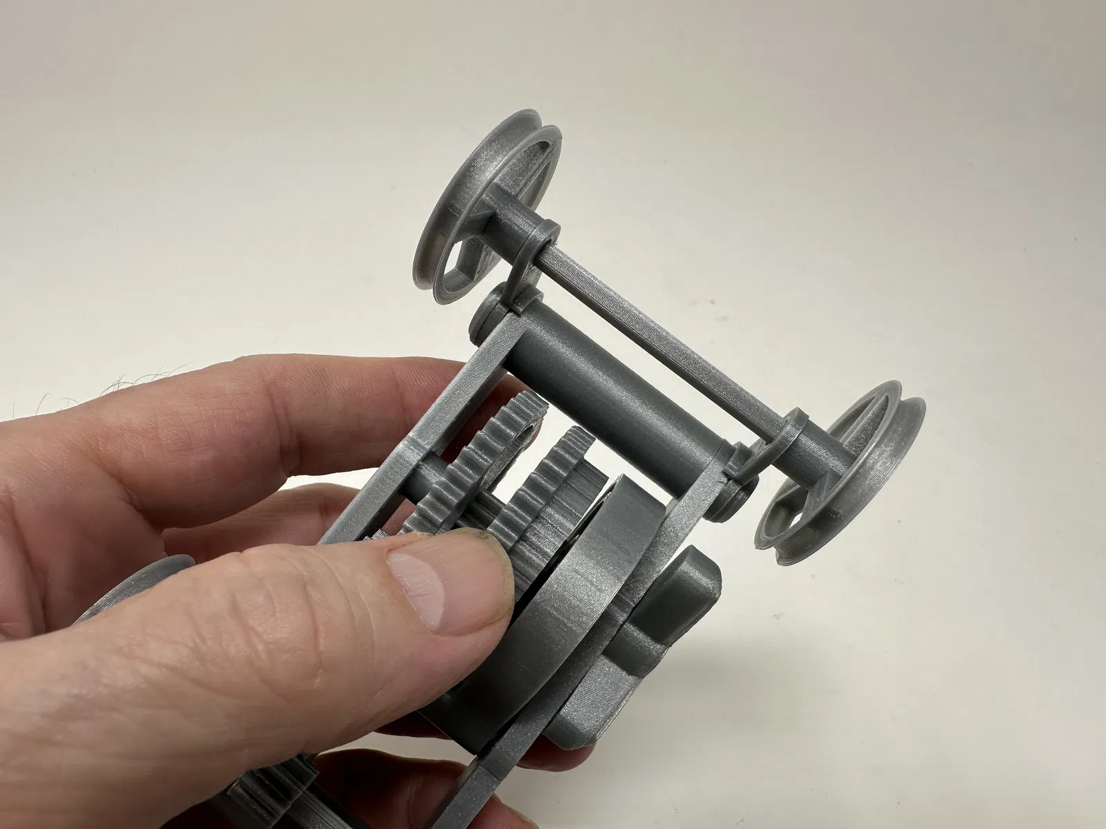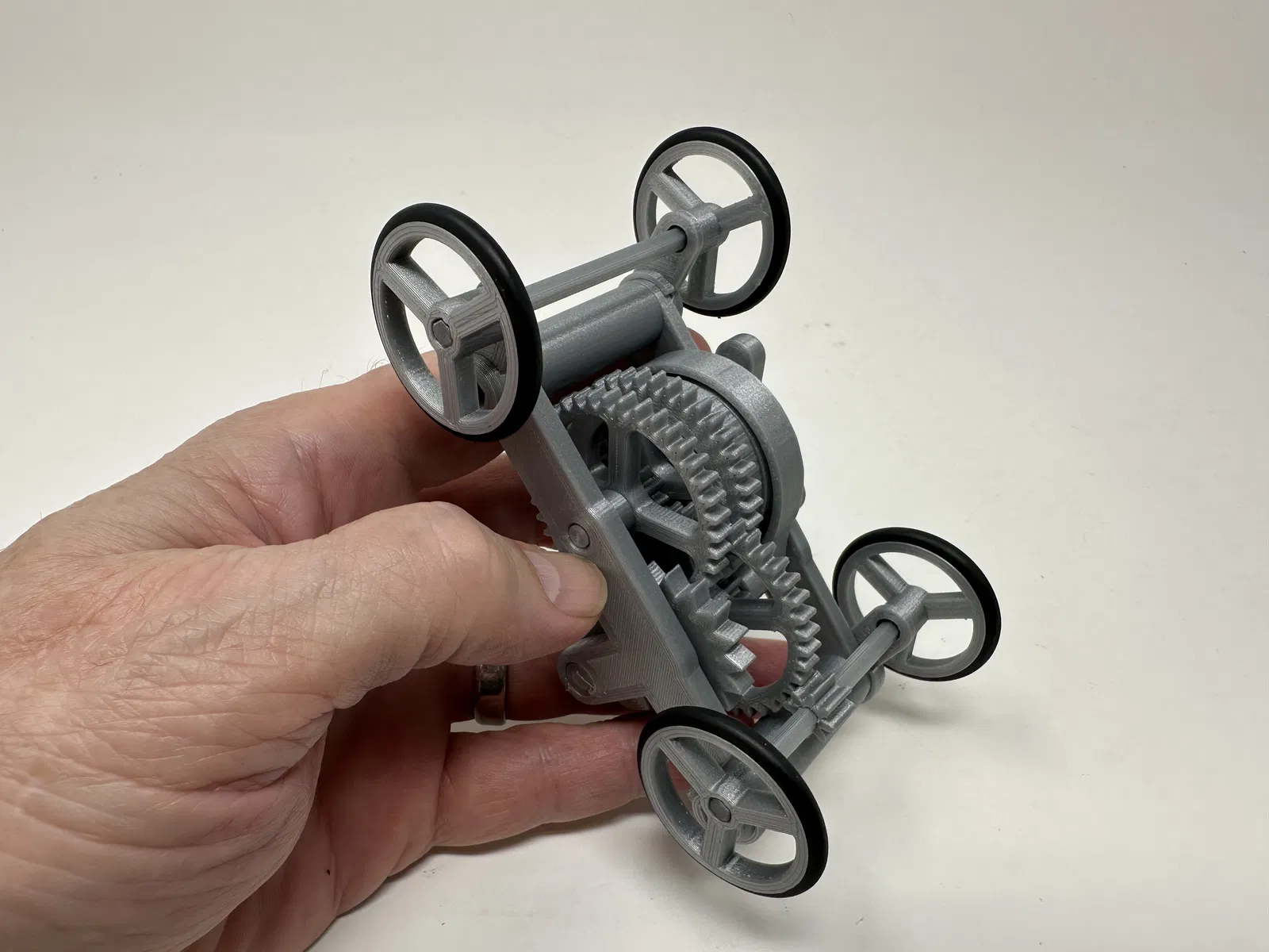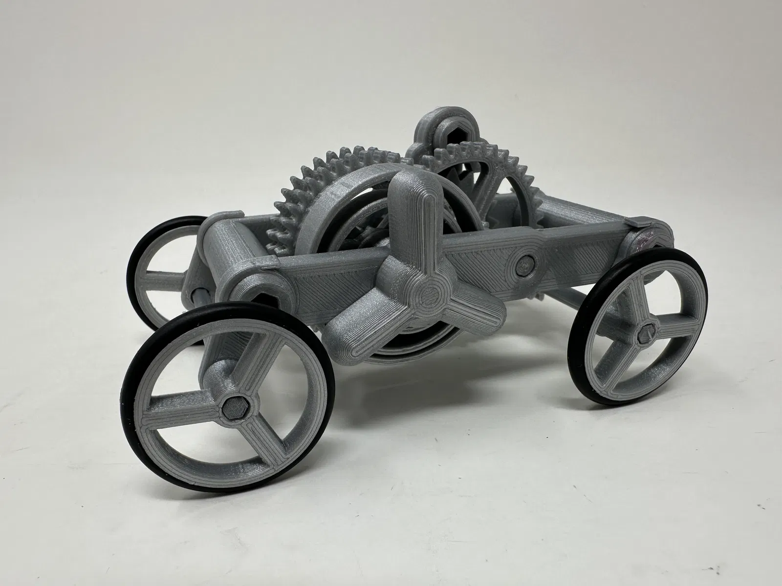 Được thiết kế như một dự án khoa học cho mấy đứa cháu, mô hình này có thể dùng như một bộ truyền động cơ khí trốn thoát 3D in, hoặc với các bộ phận dẫn động bổ sung, một chiếc xe cơ khí trốn thoát 3D in. Mấy đứa cháu có máy in 3D và do đó sẽ tự in các bộ phận của chúng, mặc dù tôi có thể cần giúp đỡ một chút trong việc lắp ráp, nhưng ôi chao, thật vui khi có thời gian bên cháu!