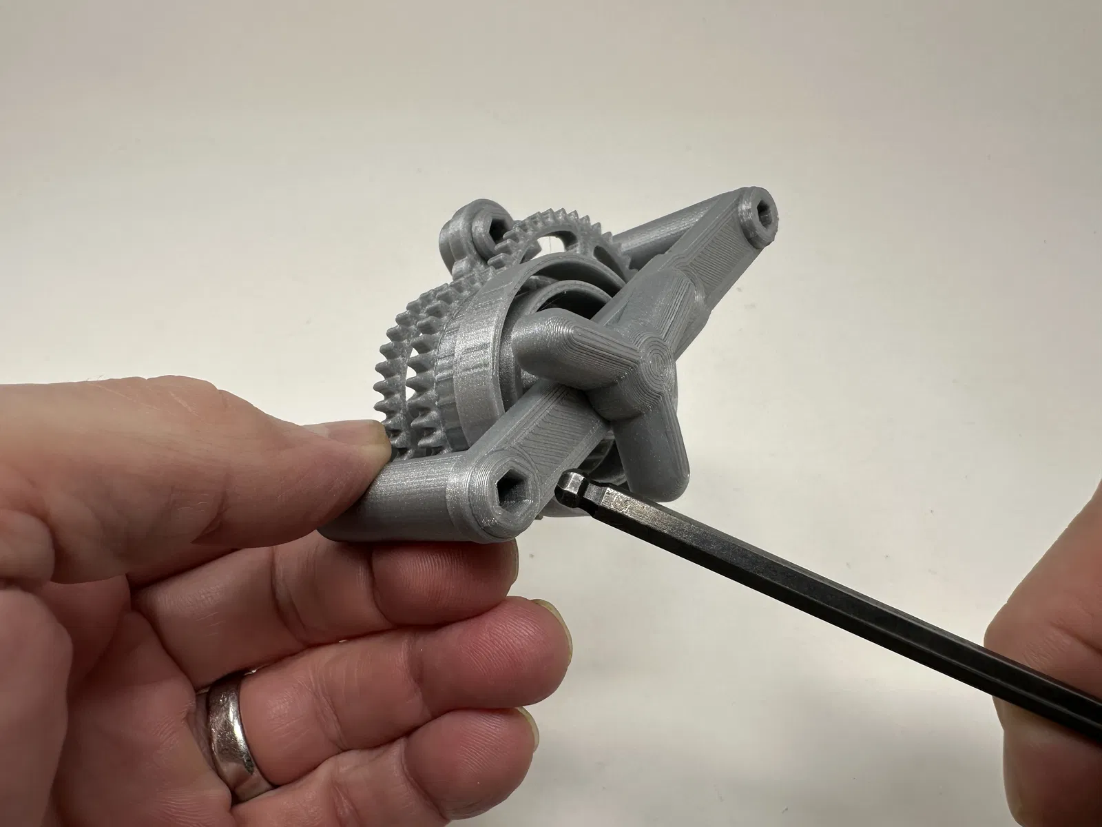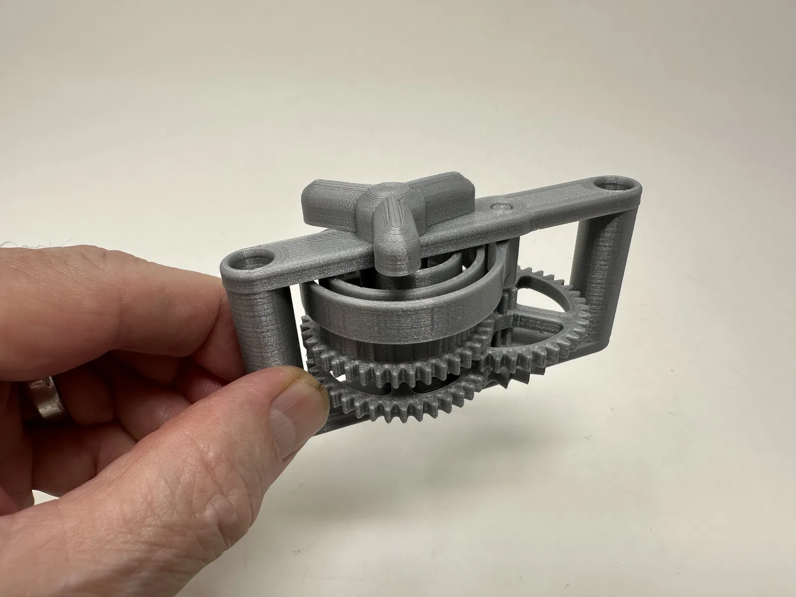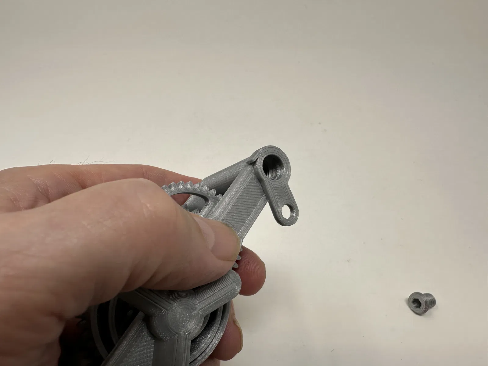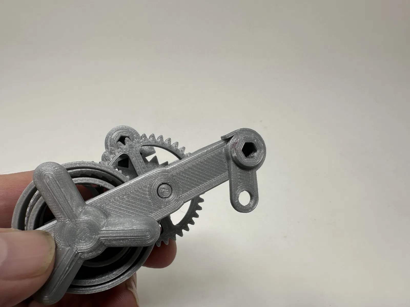 Cơ cấu này là một bản in và lắp ráp có độ chính xác cao, đôi khi sử dụng các bộ phận in 3D có độ chính xác rất nhỏ trong không gian hạn chế với sự căn chỉnh có độ chính xác cao. Trước khi lắp ráp, tôi đã thử lắp và cắt, dũa, khoan, chà nhám, v.v., tất cả các bộ phận khi cần thiết để các bề mặt chuyển động di chuyển trơn tru và các bề mặt không di chuyển vừa khít. Tùy thuộc vào slicer, máy in, cài đặt máy in và màu sắc bạn đã chọn, bạn có thể cần cắt, dũa, khoan và/hoặc chà nhám nhiều hay ít để tái tạo thành công mô hình này. Tôi đã cẩn thận dũa tất cả các cạnh tiếp xúc với tấm đế để đảm bảo loại bỏ tất cả các vết chảy ra khỏi tấm đế và tất cả các cạnh đều nhẵn bằng cách sử dụng các tệp trang sức nhỏ và nhiều sự kiên nhẫn.