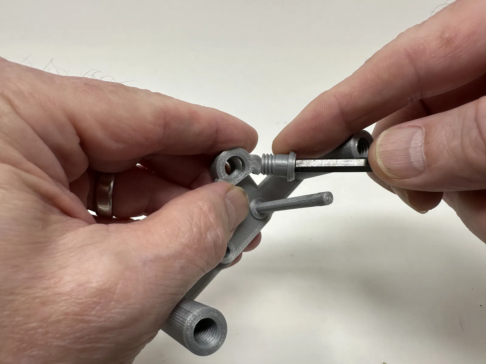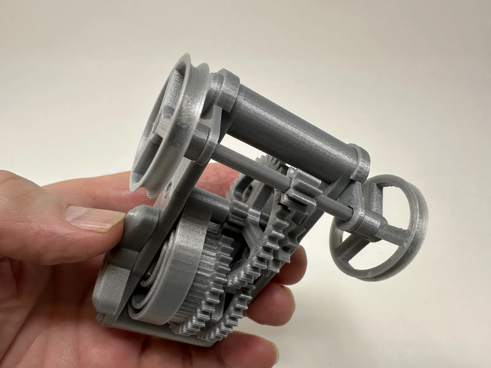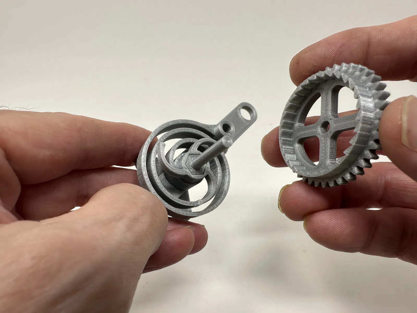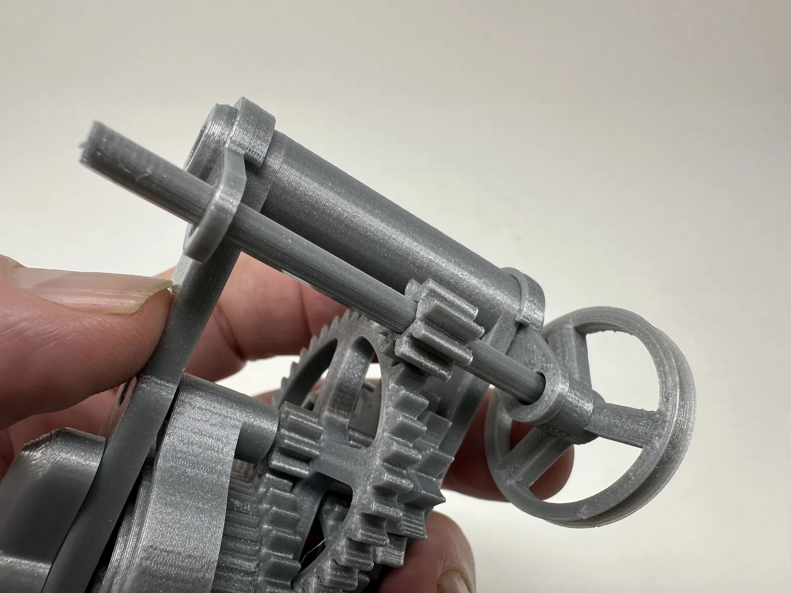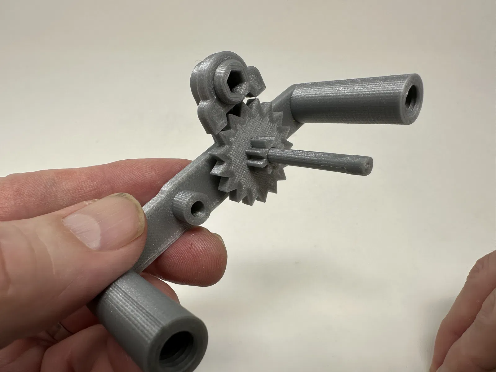 Cơ cấu này là một bản in và lắp ráp có độ chính xác cao, đôi khi sử dụng các bộ phận in 3D có độ chính xác rất nhỏ trong không gian hạn chế với sự căn chỉnh có độ chính xác cao. Trước khi lắp ráp, tôi đã thử lắp và cắt, dũa, khoan, chà nhám, v.v., tất cả các bộ phận khi cần thiết để các bề mặt chuyển động di chuyển trơn tru và các bề mặt không di chuyển vừa khít. Tùy thuộc vào slicer, máy in, cài đặt máy in và màu sắc bạn đã chọn, bạn có thể cần cắt, dũa, khoan và/hoặc chà nhám nhiều hay ít để tái tạo thành công mô hình này. Tôi đã cẩn thận dũa tất cả các cạnh tiếp xúc với tấm đế để đảm bảo loại bỏ tất cả các vết chảy ra khỏi tấm đế và tất cả các cạnh đều nhẵn bằng cách sử dụng các tệp trang sức nhỏ và nhiều sự kiên nhẫn.