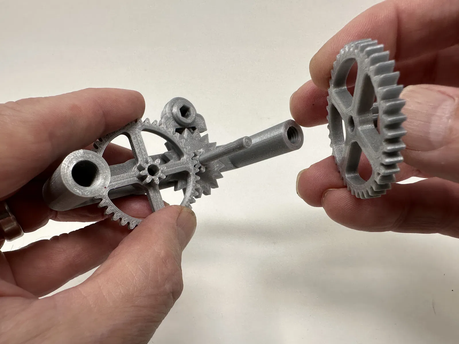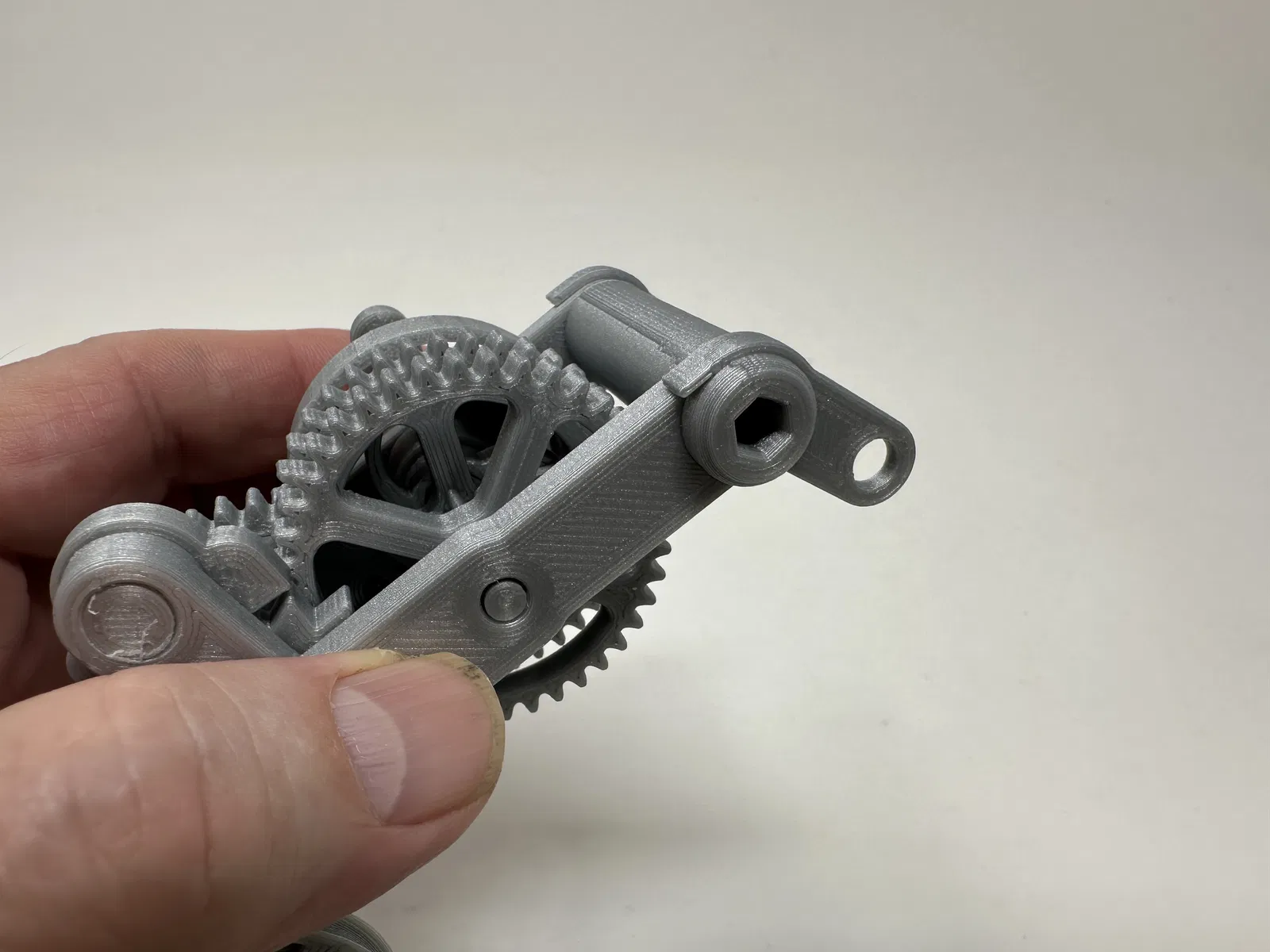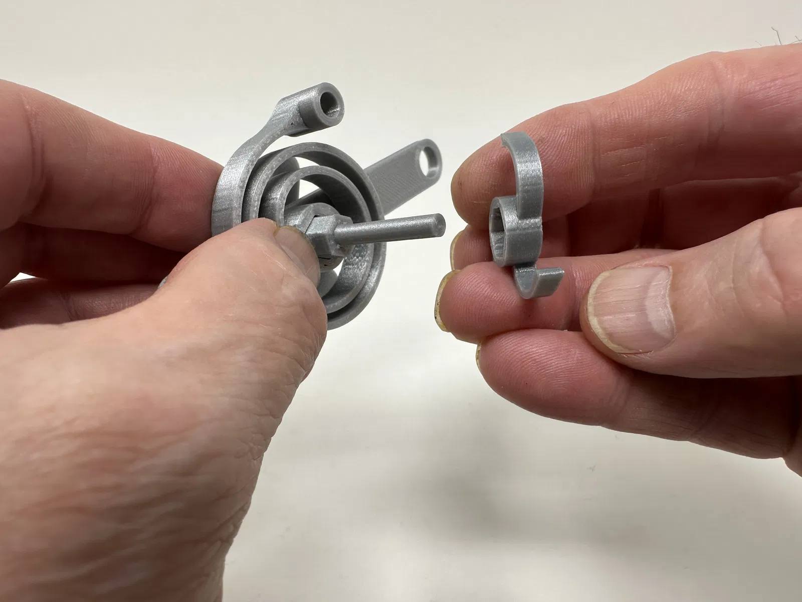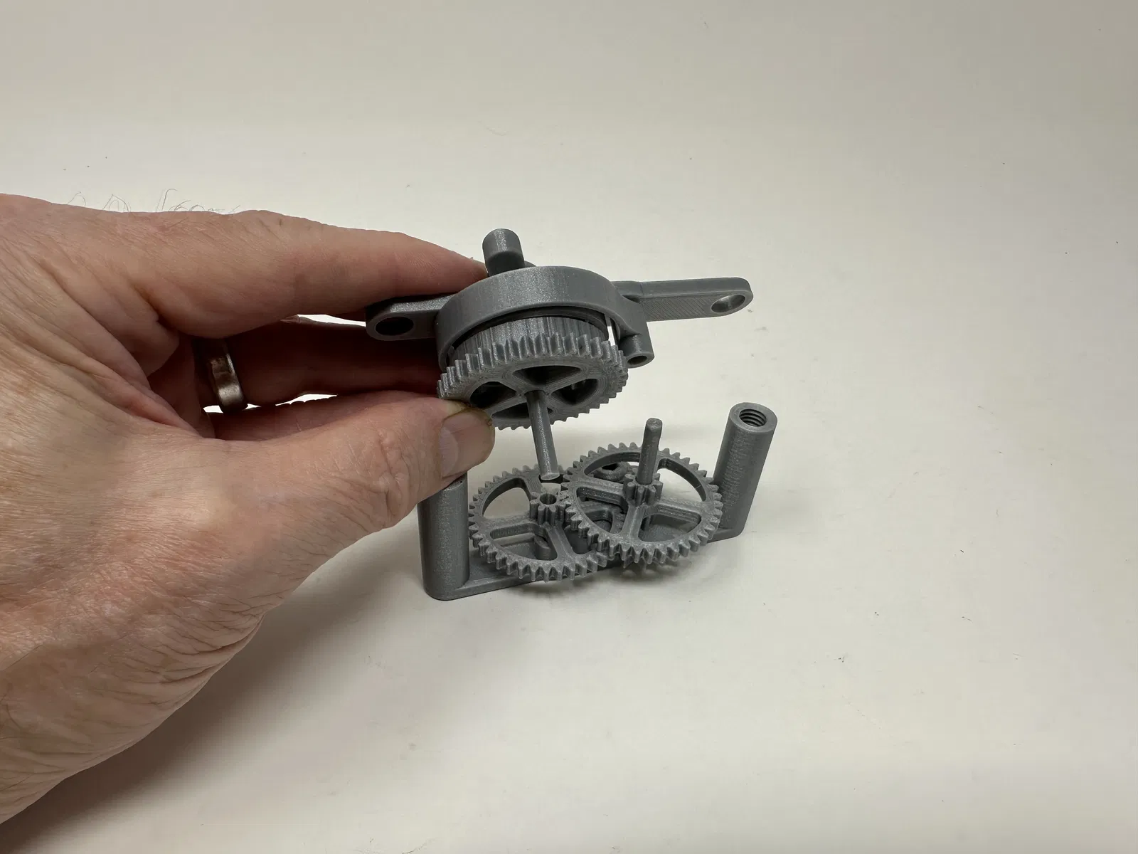 Cơ cấu này là một bản in và lắp ráp có độ chính xác cao, đôi khi sử dụng các bộ phận in 3D có độ chính xác rất nhỏ trong không gian hạn chế với sự căn chỉnh có độ chính xác cao. Trước khi lắp ráp, tôi đã thử lắp và cắt, dũa, khoan, chà nhám, v.v., tất cả các bộ phận khi cần thiết để các bề mặt chuyển động di chuyển trơn tru và các bề mặt không di chuyển vừa khít. Tùy thuộc vào slicer, máy in, cài đặt máy in và màu sắc bạn đã chọn, bạn có thể cần cắt, dũa, khoan và/hoặc chà nhám nhiều hay ít để tái tạo thành công mô hình này. Tôi đã cẩn thận dũa tất cả các cạnh tiếp xúc với tấm đế để đảm bảo loại bỏ tất cả các vết chảy ra khỏi tấm đế và tất cả các cạnh đều nhẵn bằng cách sử dụng các tệp trang sức nhỏ và nhiều sự kiên nhẫn.
