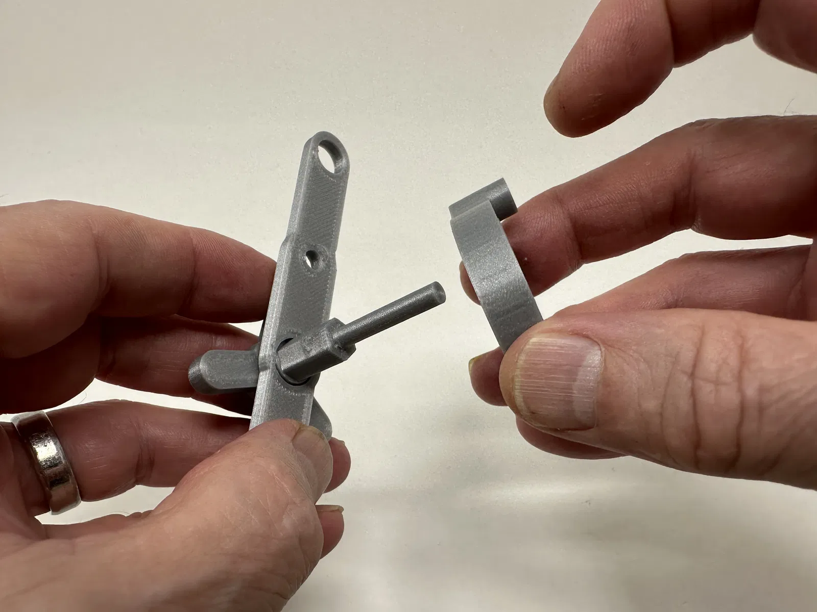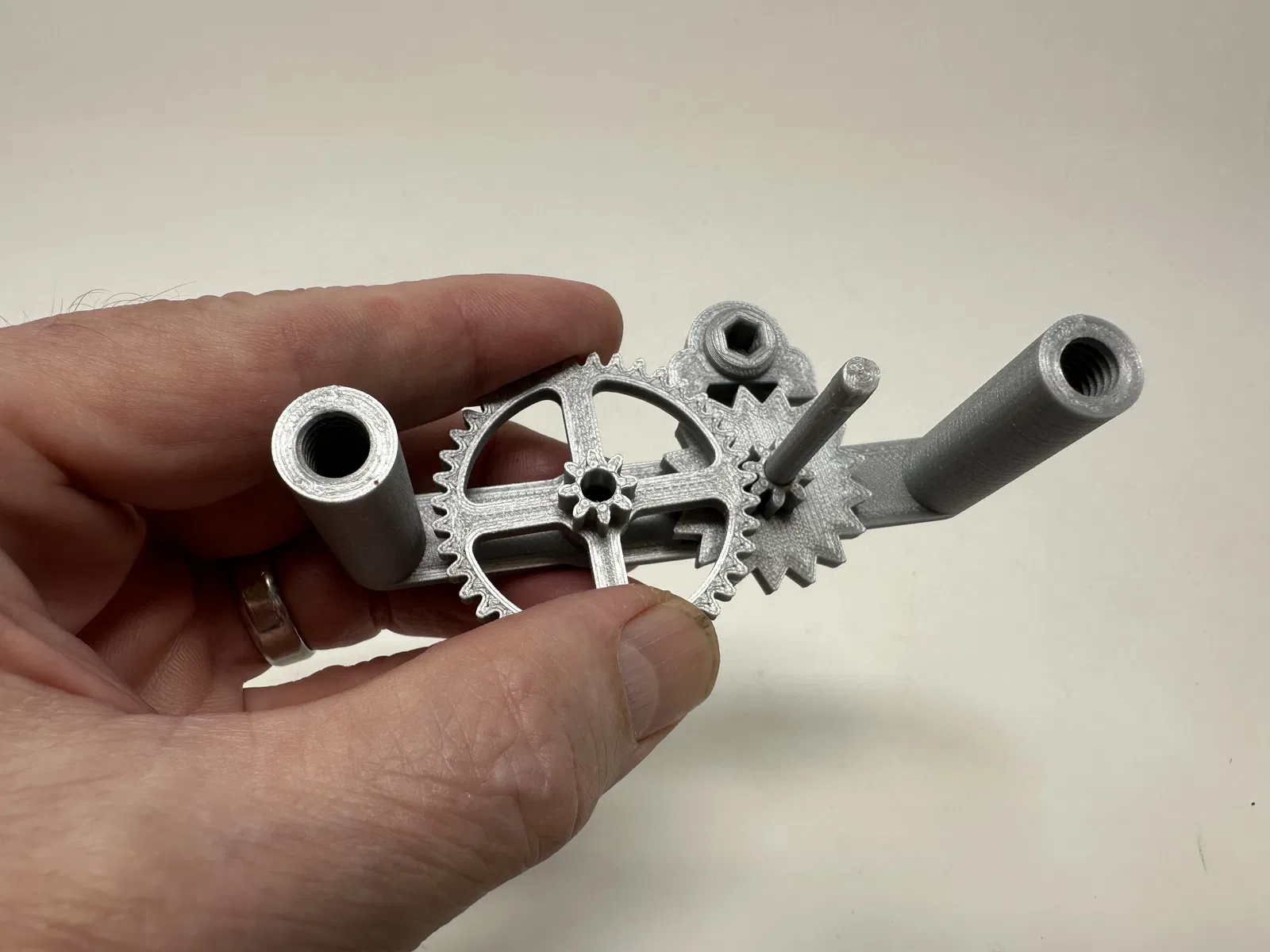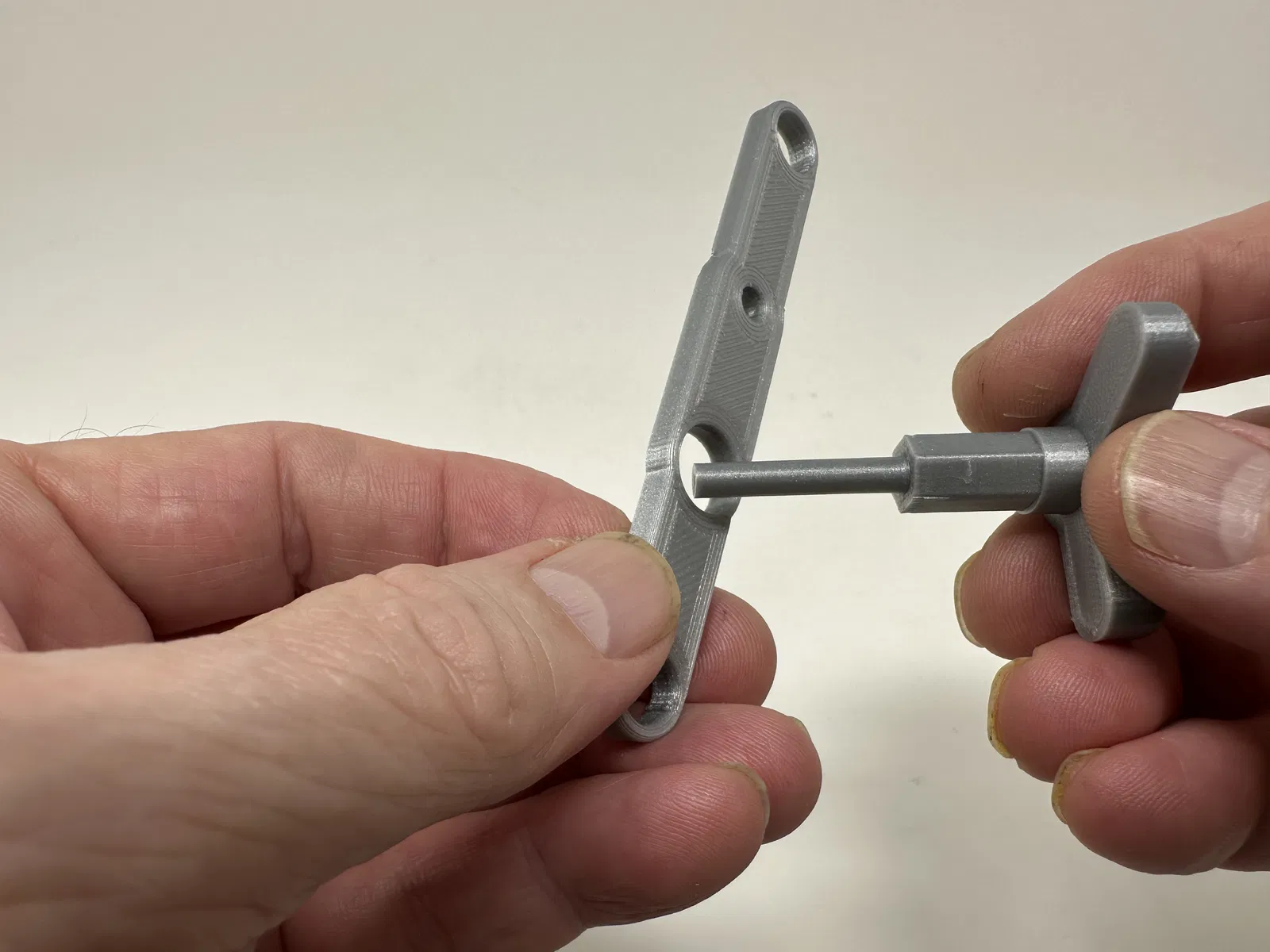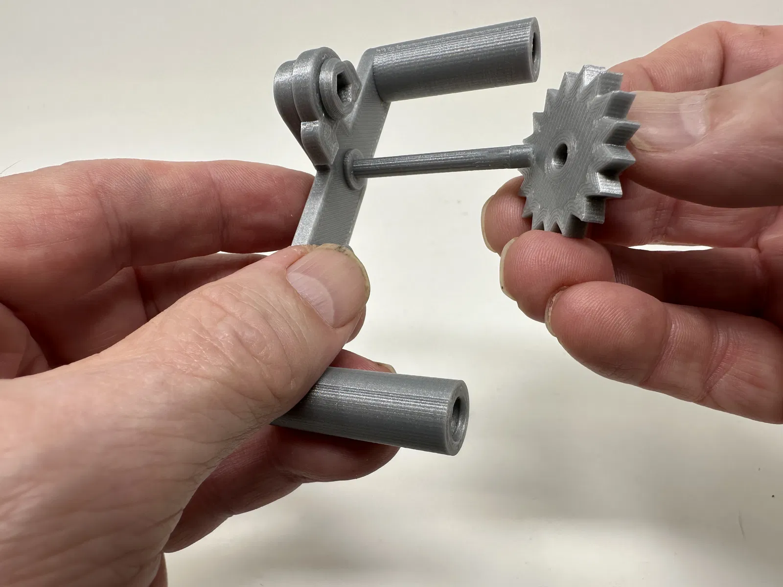 Cơ cấu này là một bản in và lắp ráp có độ chính xác cao, đôi khi sử dụng các bộ phận in 3D có độ chính xác rất nhỏ trong không gian hạn chế với sự căn chỉnh có độ chính xác cao. Trước khi lắp ráp, tôi đã thử lắp và cắt, dũa, khoan, chà nhám, v.v., tất cả các bộ phận khi cần thiết để các bề mặt chuyển động di chuyển trơn tru và các bề mặt không di chuyển vừa khít. Tùy thuộc vào slicer, máy in, cài đặt máy in và màu sắc bạn đã chọn, bạn có thể cần cắt, dũa, khoan và/hoặc chà nhám nhiều hay ít để tái tạo thành công mô hình này. Tôi đã cẩn thận dũa tất cả các cạnh tiếp xúc với tấm đế để đảm bảo loại bỏ tất cả các vết chảy ra khỏi tấm đế và tất cả các cạnh đều nhẵn bằng cách sử dụng các tệp trang sức nhỏ và nhiều sự kiên nhẫn.