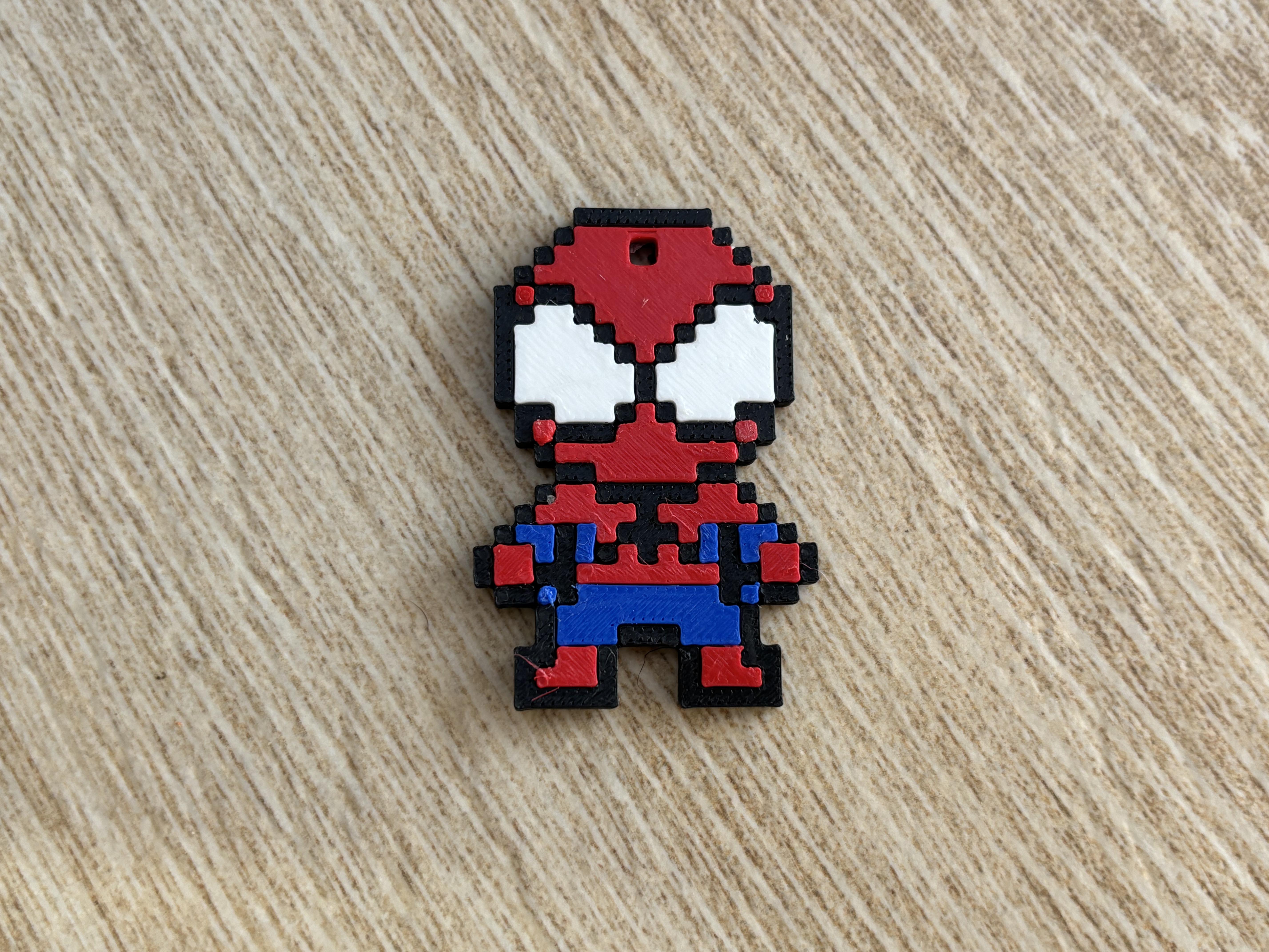 Móc khóa Spider-Man 8-bit nhiều bộ phận, lắp ráp dễ dàng không cần keo. Thiết kế ghép nối đơn giản, hoàn hảo cho cả người hâm mộ và người làm mô hình, mang chút hoài niệm theo bạn.