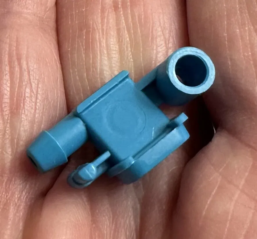 Hơi bực mình, tui mới bắt tay vô làm thử một cái part in 3D xem có xài được không. Sau một hồi mò mẫm, tui cũng làm được hai cái nón đường kính dưới 0.4mm để xịt nước từ ống 3mm ra thành hình gần giống y hệt cái đầu phun zin.