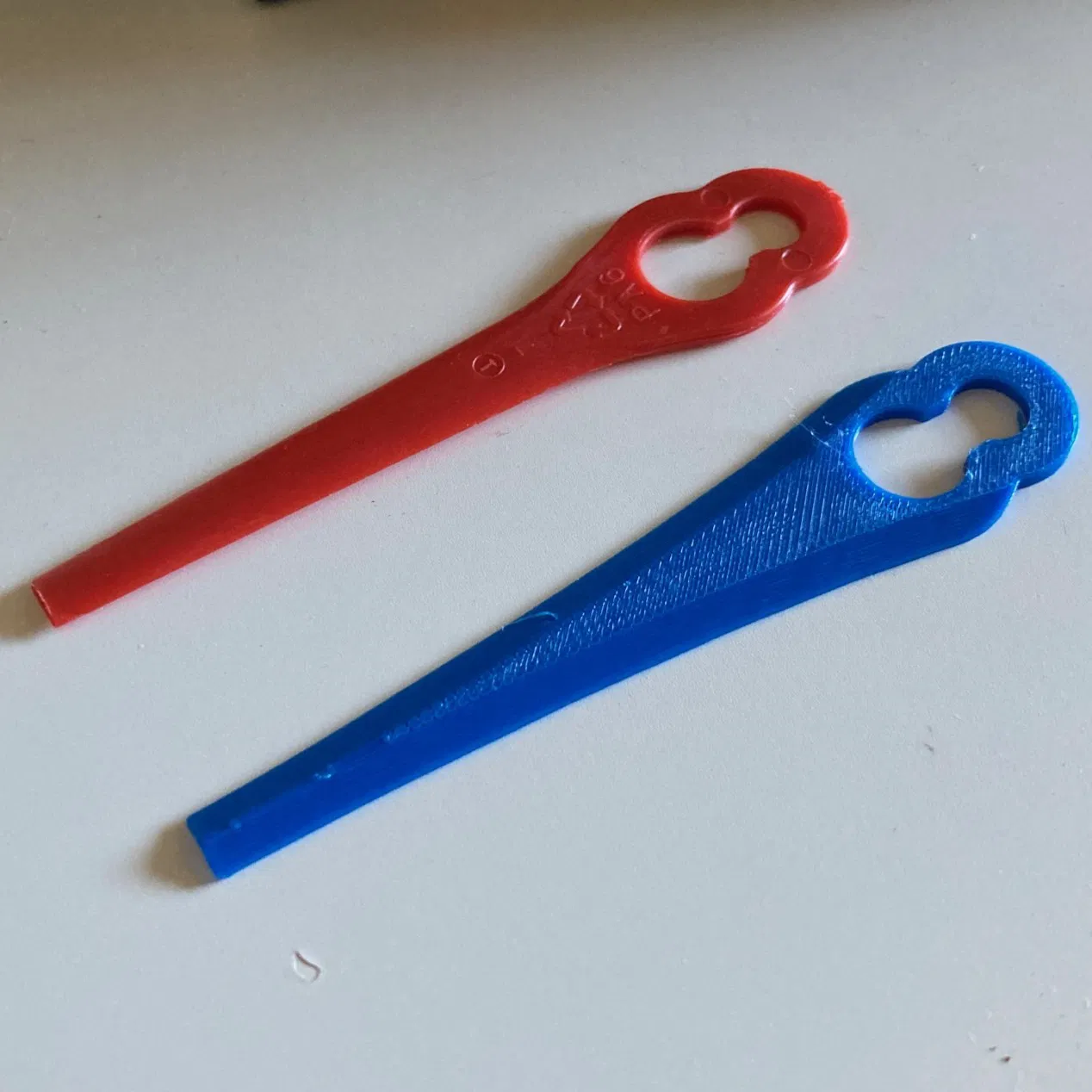 Bộ lưỡi cắt thay thế cho máy cắt cỏ không dây Ozito PXC (Einhell) 18V 240mm. Dễ dàng in 3D với PETG hoặc PLA, nhưng vật liệu này khá giòn nên bạn cần in nhiều lưỡi để thay thế.