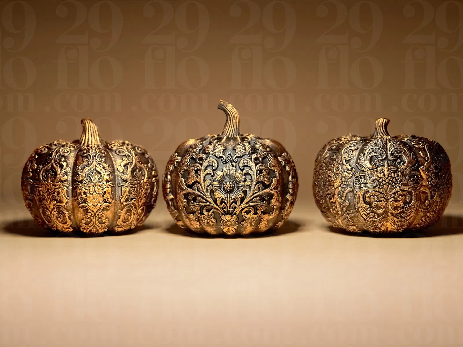 Mô hình 3D cho 3 Quả Bí Ngô Trang Trí. Bao gồm cài đặt in gợi ý, mẹo về độ bám dính khay in và thông tin hỗ trợ Patreon. Hoàn hảo cho trang trí Halloween hoặc mùa thu.