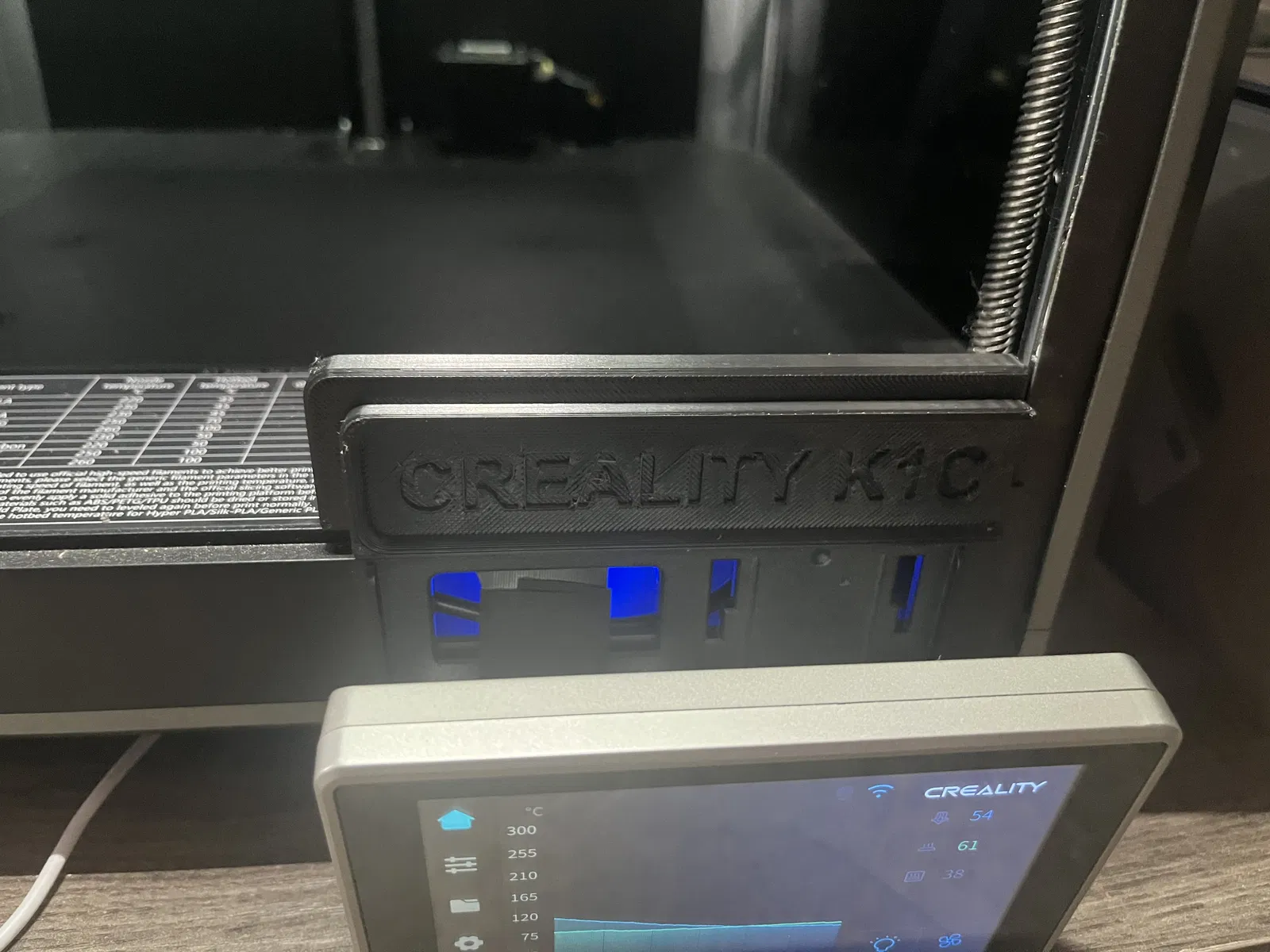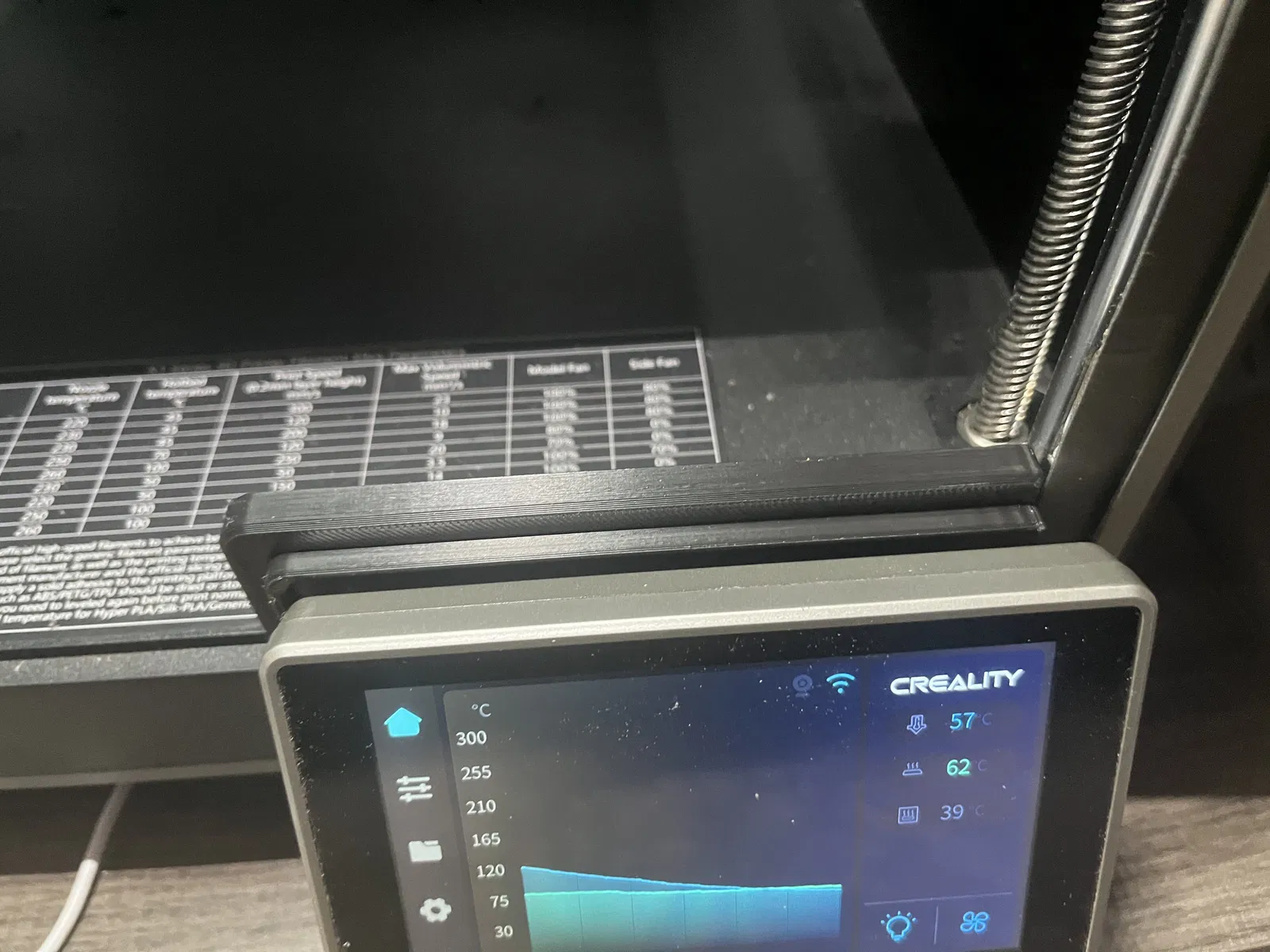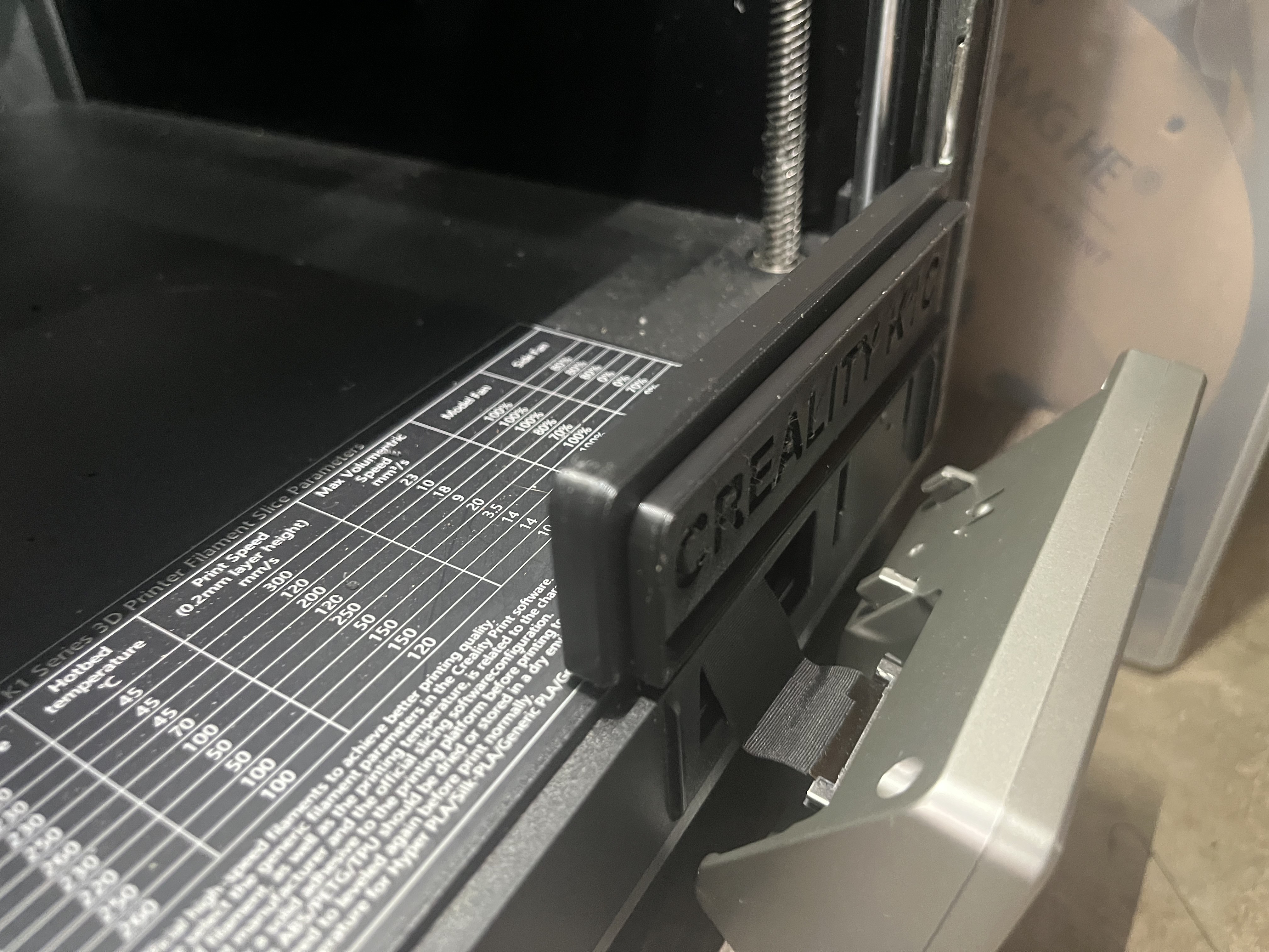 Chặn Khe Cửa Kính Máy K1C để giảm thoát nhiệt phòng, giúp đạt nhiệt độ phòng cao hơn (lên tới 60 độ C) cho các vật liệu như ABS cần nhiệt độ phòng cao.