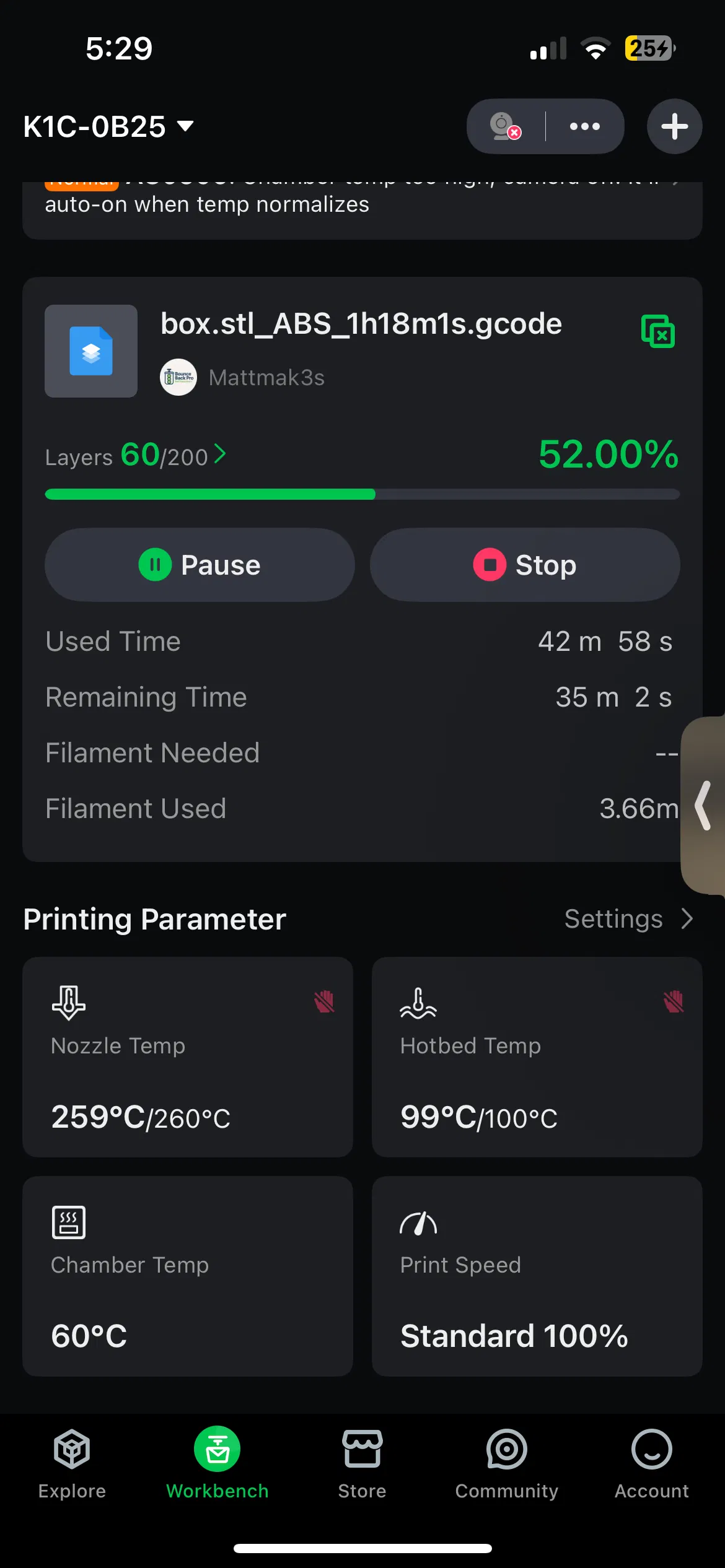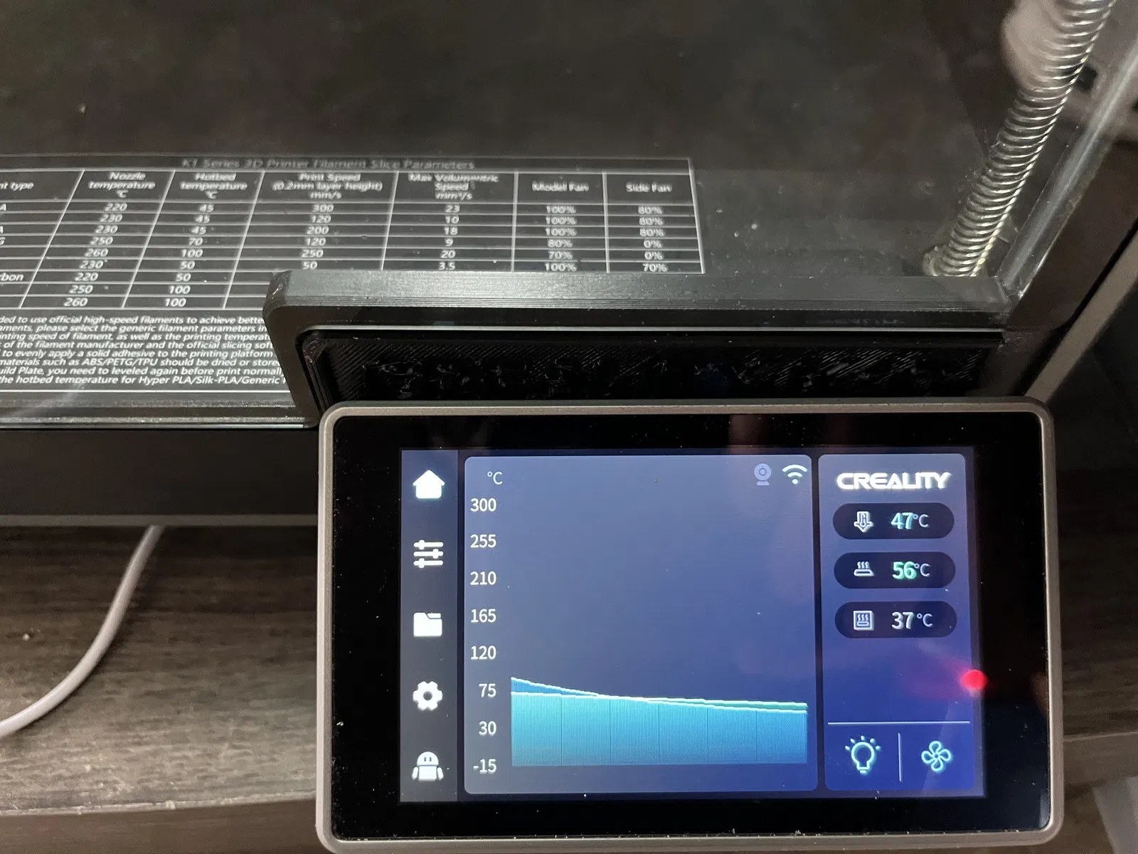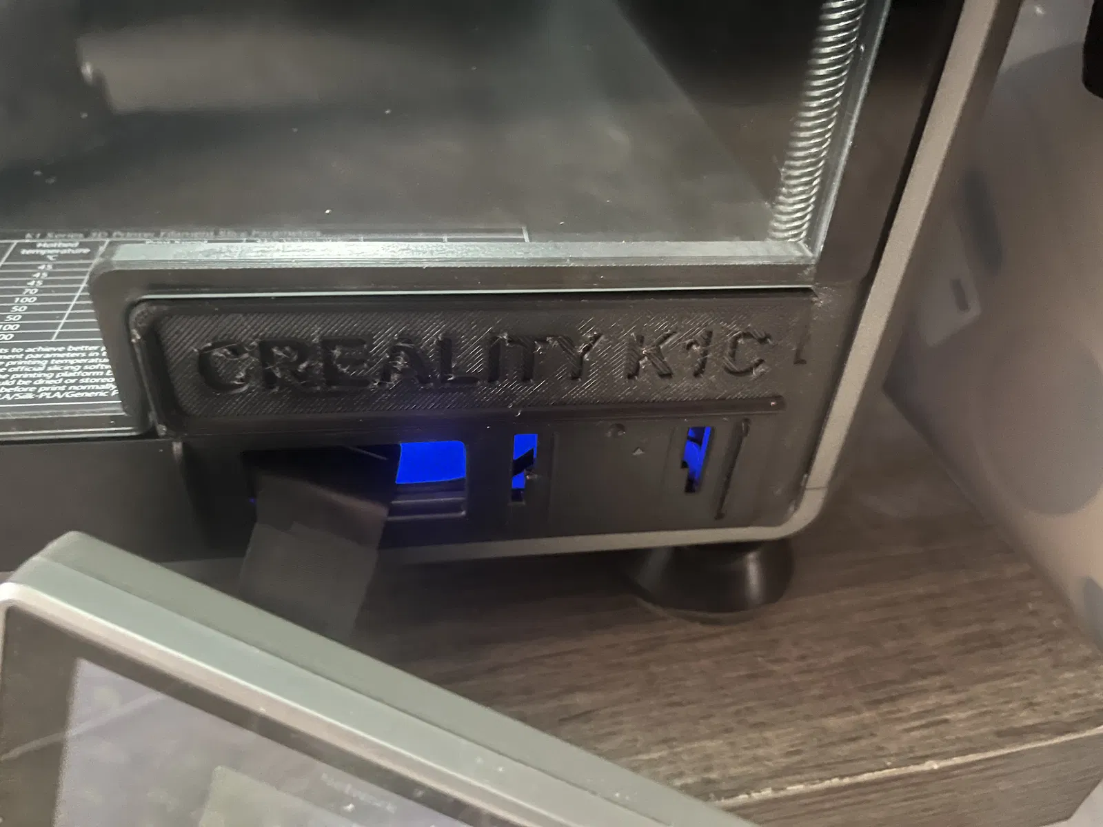 Chặn Khe Cửa Kính Máy K1C để giảm thoát nhiệt phòng, giúp đạt nhiệt độ phòng cao hơn (lên tới 60 độ C) cho các vật liệu như ABS cần nhiệt độ phòng cao.