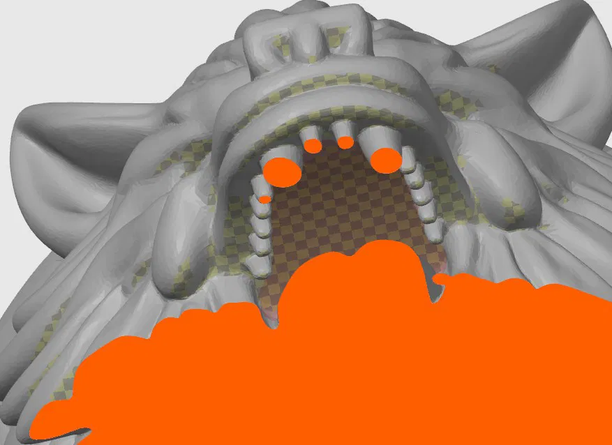 Cài đặt in khuyến nghị: PLA, lớp dày 0.2mm, 2 lớp tường, 8% lưới gyroid, hỗ trợ dạng cây tự động (ít nhất 28°), chặn hỗ trợ bên trong miệng (xem hình).