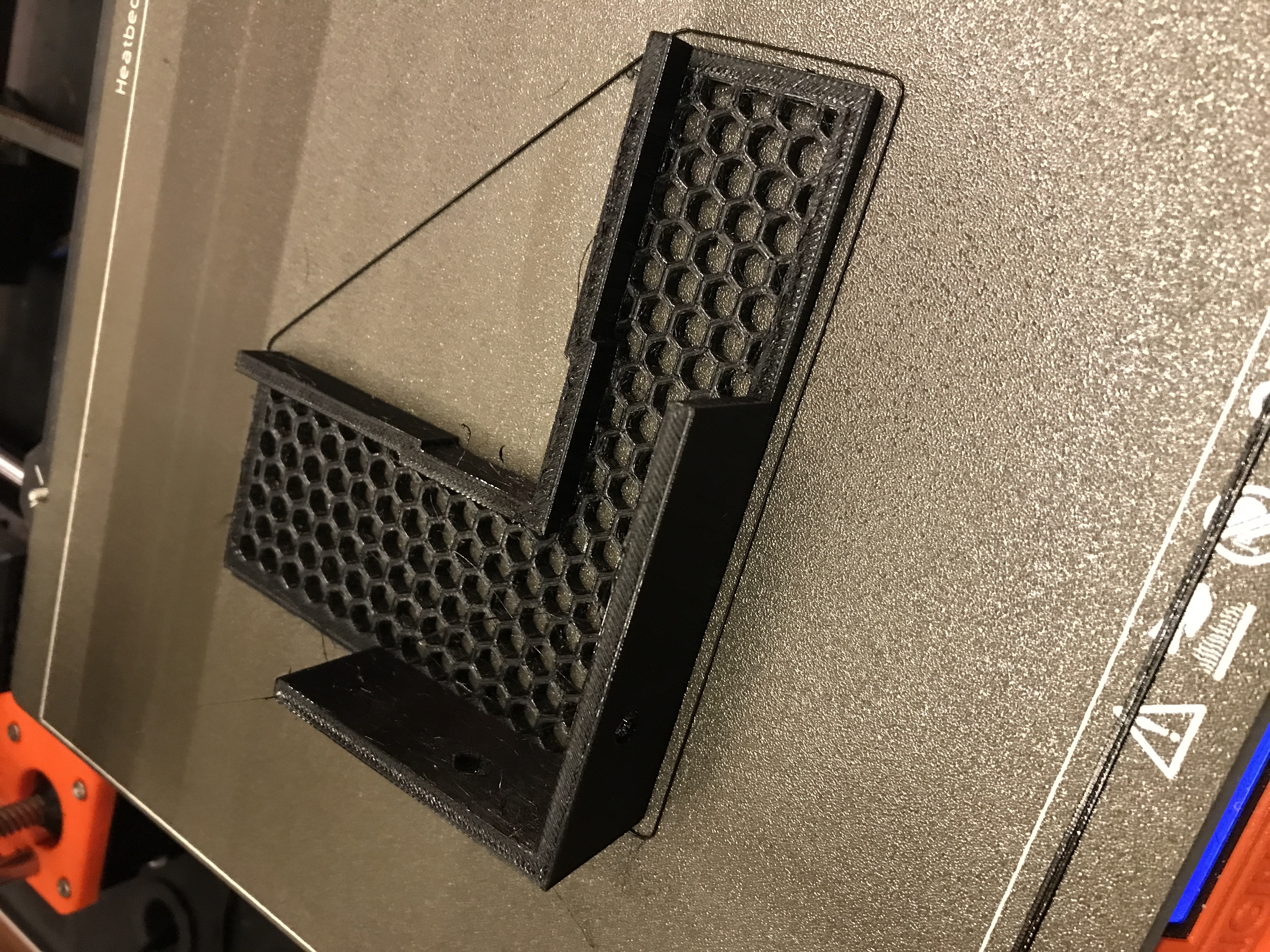 chiều cao của các bộ phận lấp đầy tổ ong được in là khác nhau. PHÍA TRƯỚC là 3.5 mm để ổn định - đây là nơi bạn cần đảm bảo vị trí chính xác. PHÍA SAU chỉ là 2mm... đủ để giữ sự thẳng hàng của trục.