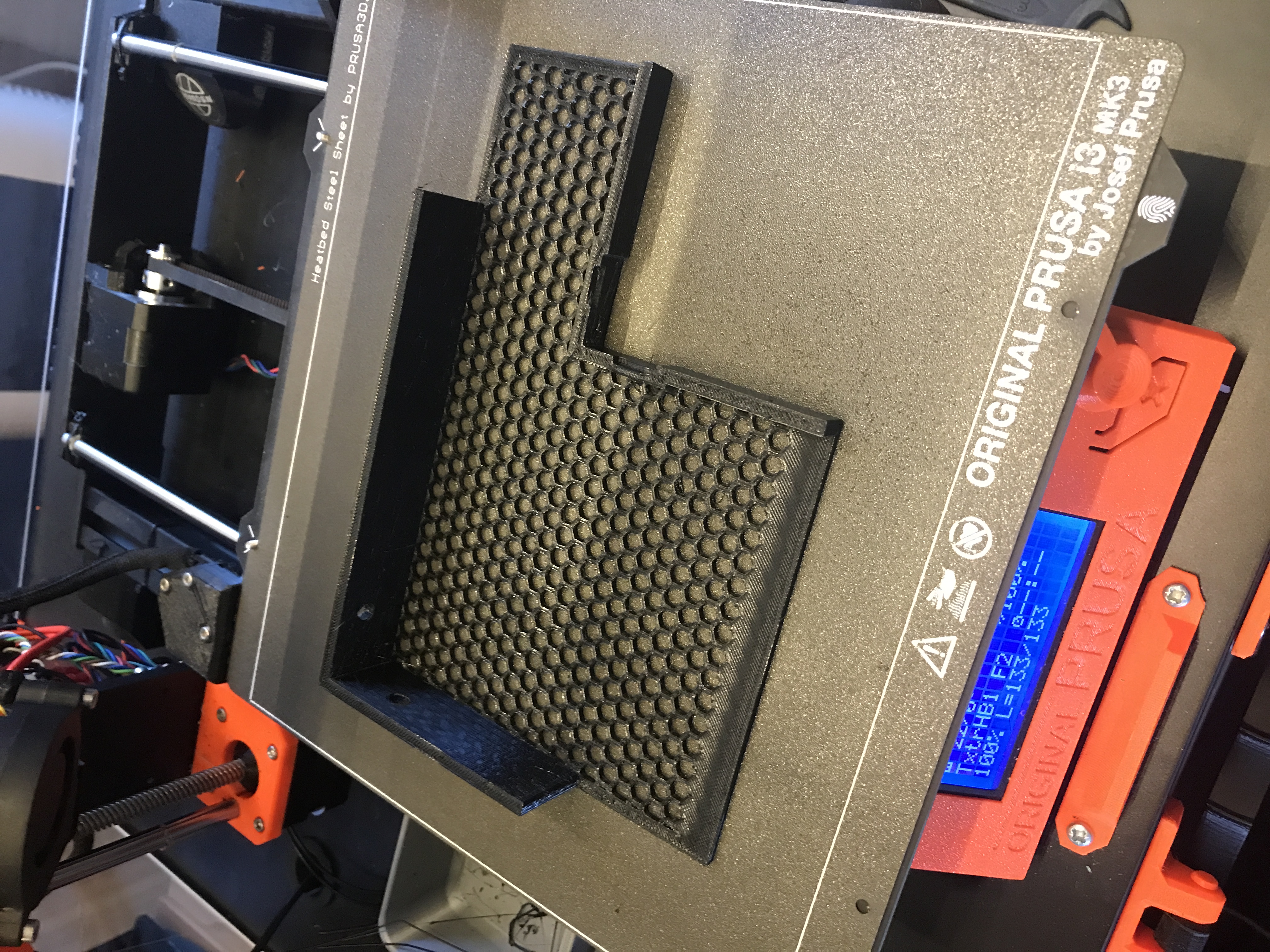 Vì sự đầy đủ của thiết bị, phụ kiện và mô tả, cũng như tính hoàn thiện của khái niệm sử dụng còn xa so với những gì chúng ta biết từ những người bạn Prusa - mọi người, một lần nữa, xin cảm ơn rất nhiều vì sản phẩm của các bạn, và vì cách các bạn cho phép người dùng sử dụng sản phẩm của mình ngay từ đầu - tôi đã cần tìm một giải pháp để định vị tấm tổ ong.