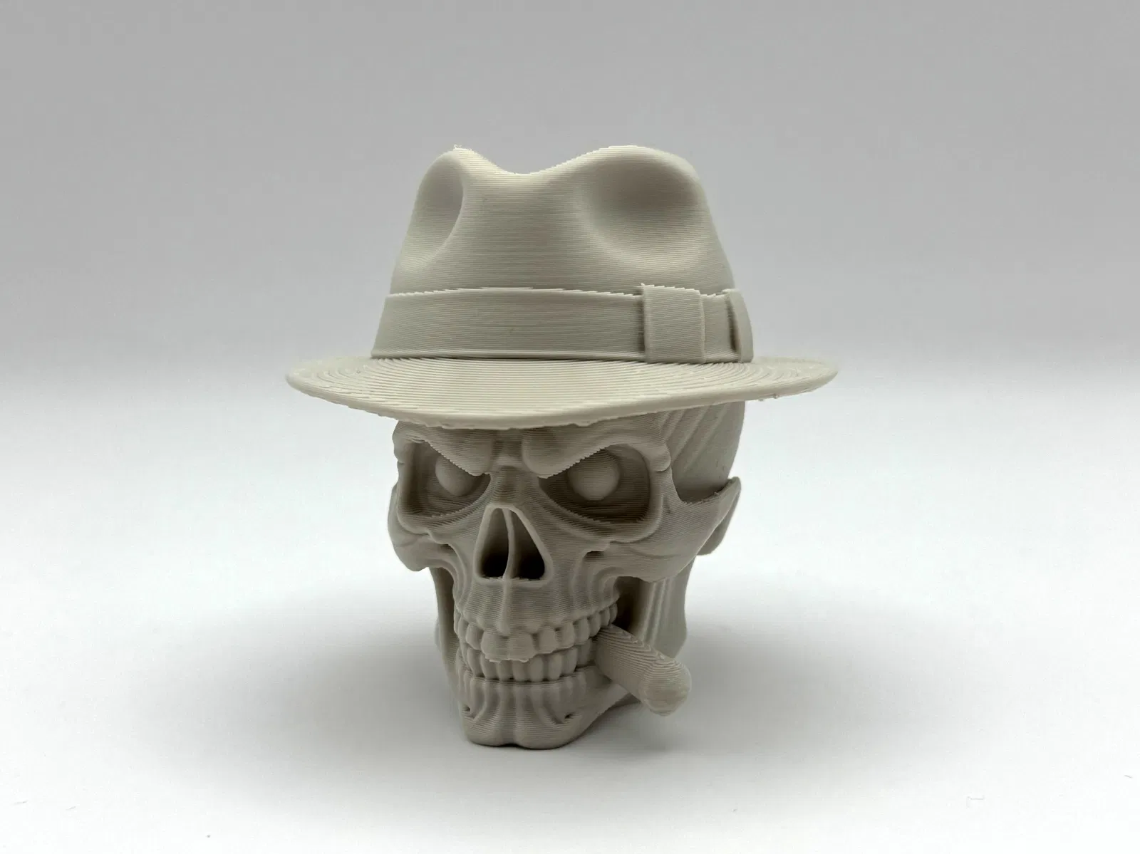 Chào mừng đến với "Đầu Lâu Mafia" – Trùm Xã Hội Đen Về Thế Giới Bên Kia. Mẫu này kết hợp phong thái gangster với vẻ đáng sợ của bộ xương, ít cần vật liệu hỗ trợ và rất dễ in.