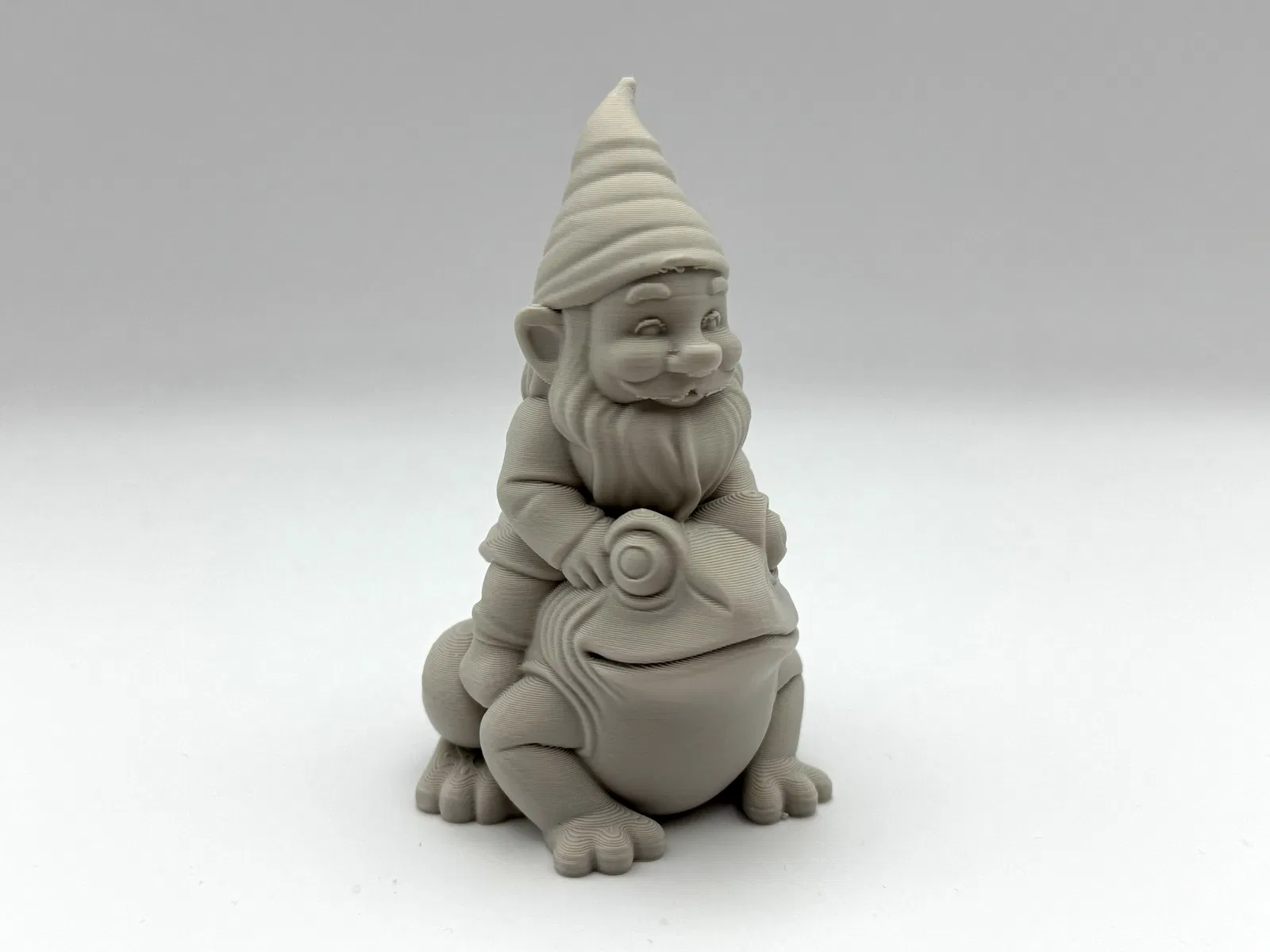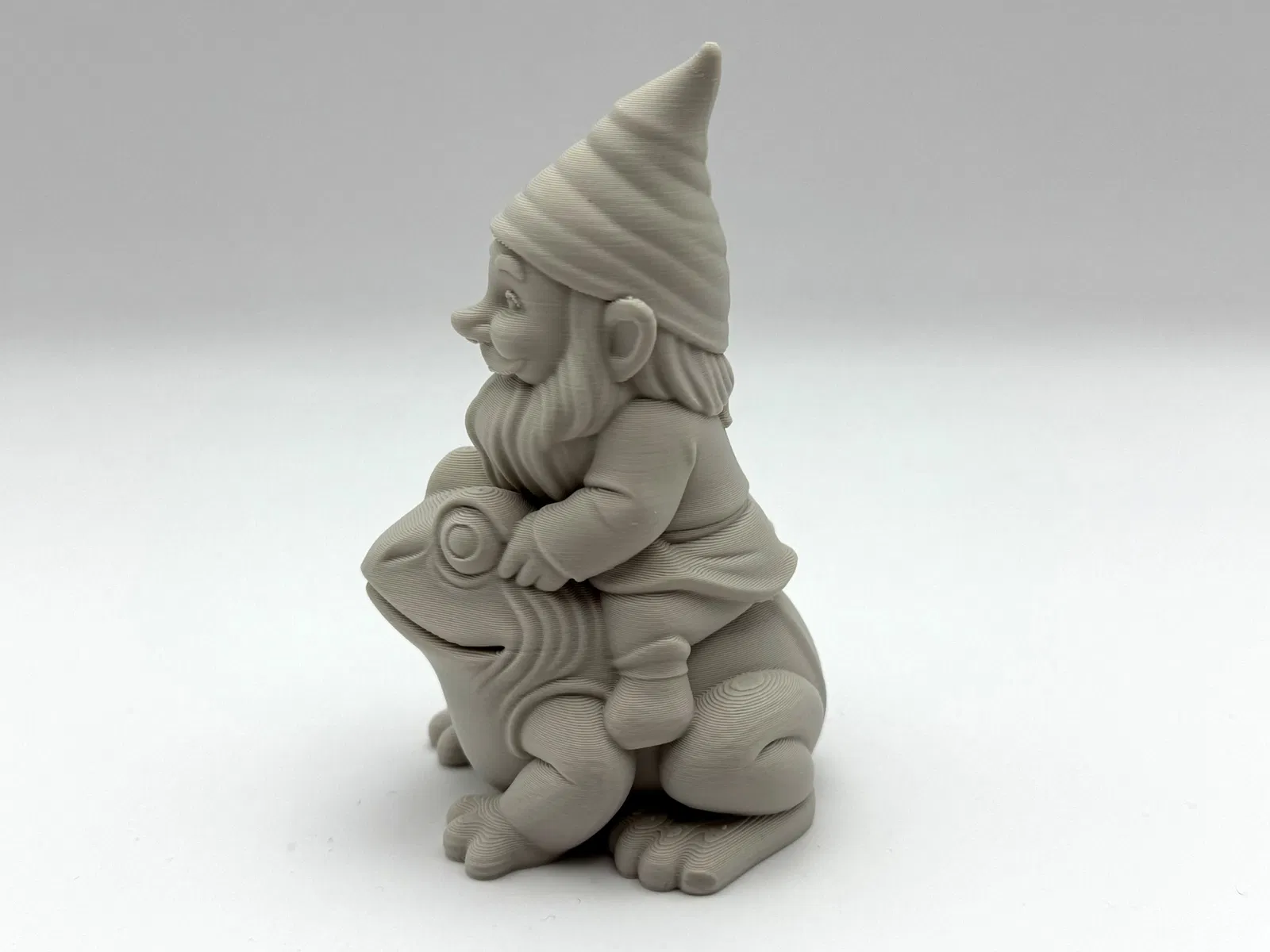 Thêm chút hài hước, vui nhộn cho khu vườn hay kệ sách của bạn với mô hình in 3D xinh xắn này, với hình ảnh ông lùn vui vẻ đang cưỡi trên lưng chú ếch mắt to!