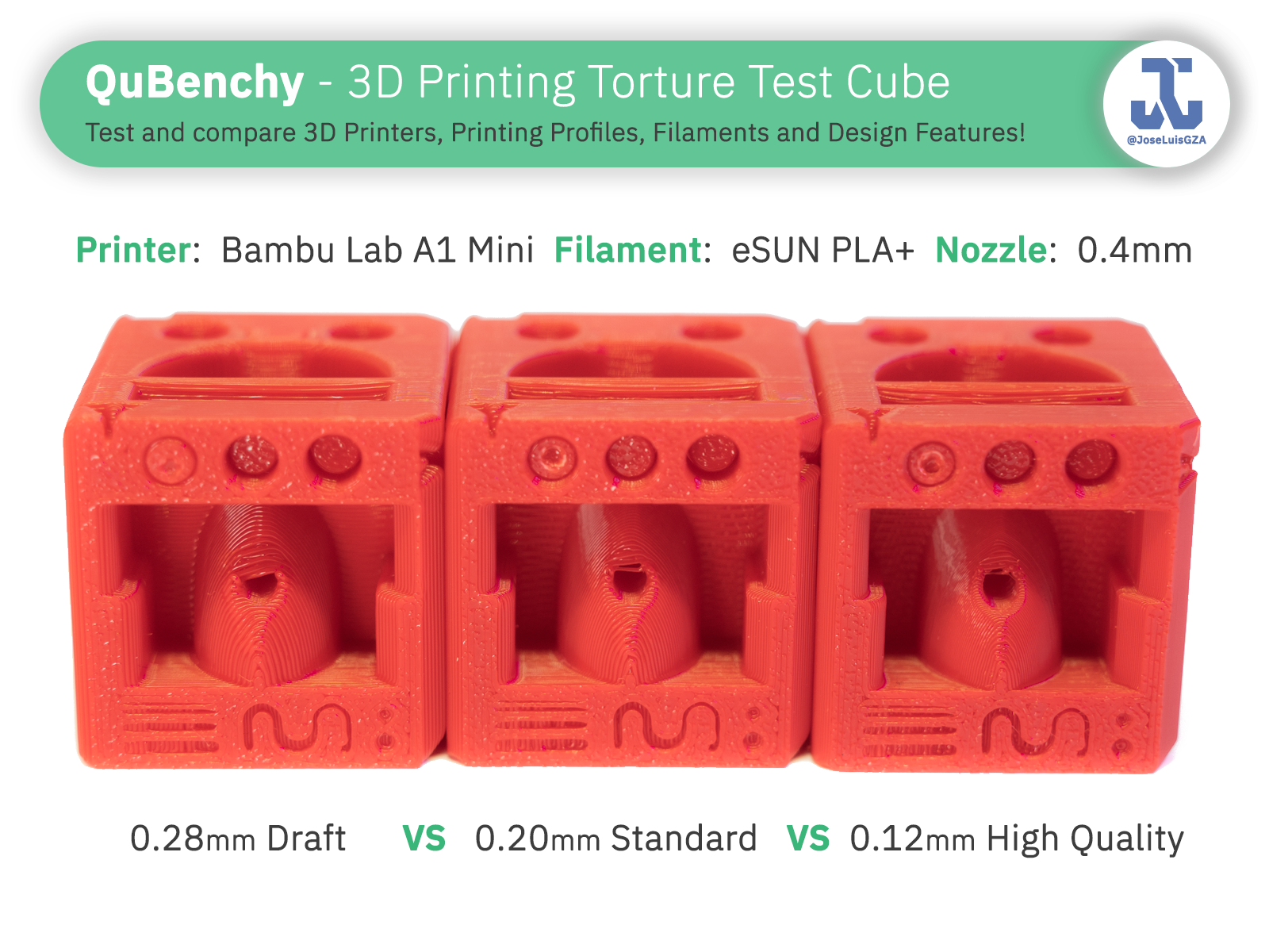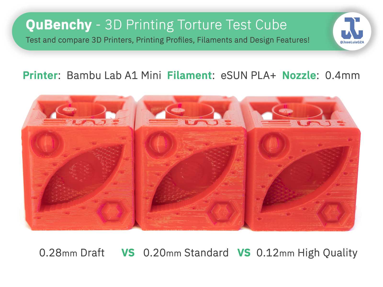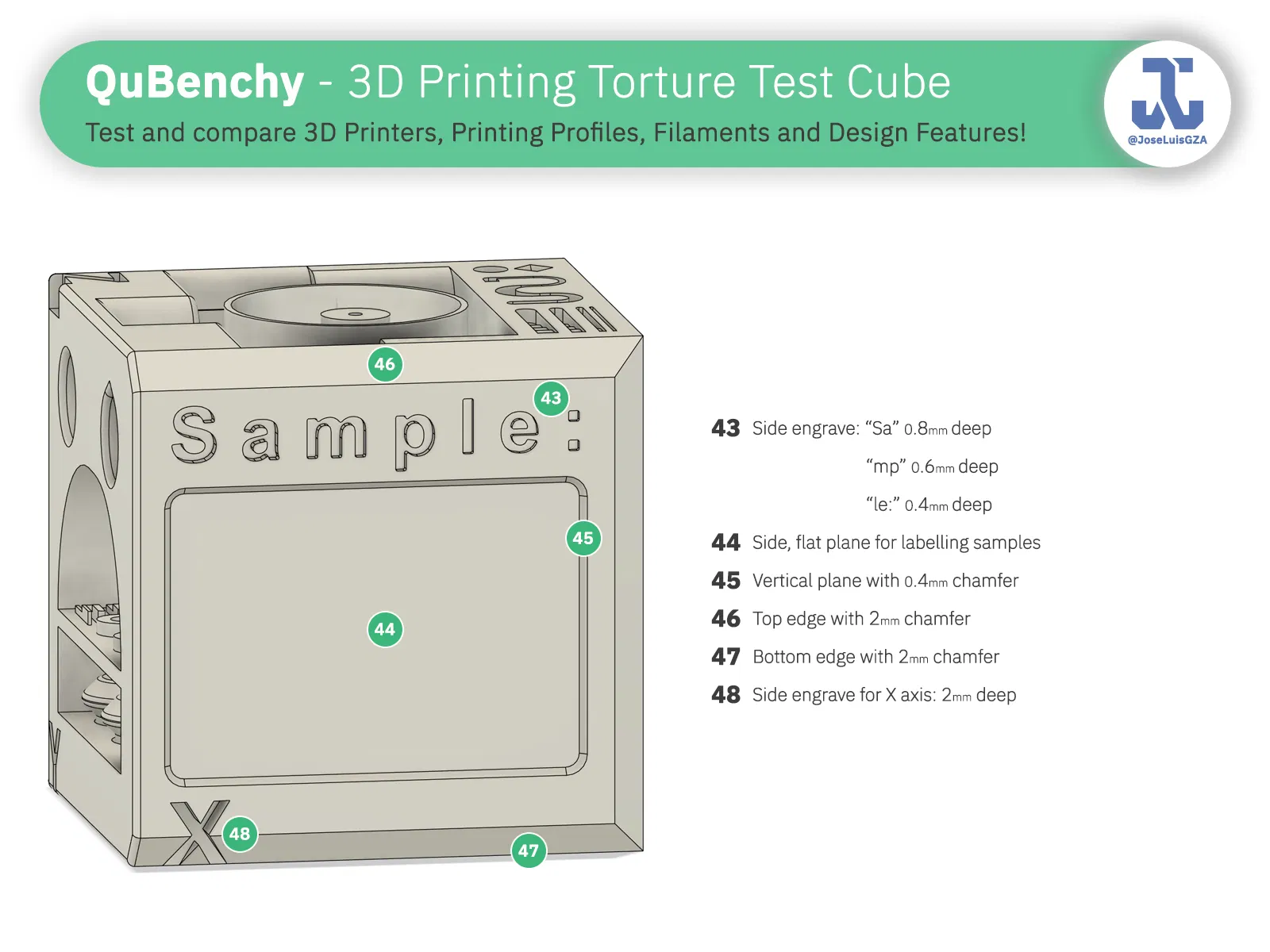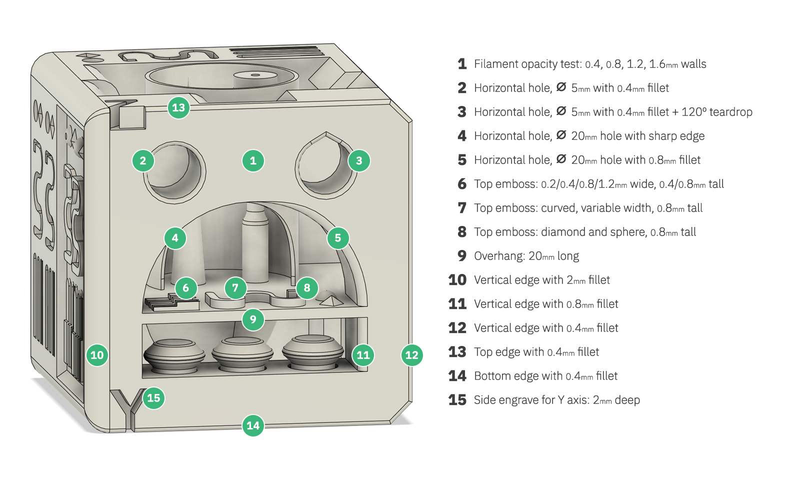 Tôi đã nhét hơn 80 bài test và tính năng khác nhau vào một khối lập phương tra tấn 3x3x3cm tiện lợi, dễ in, dễ đánh giá, so sánh và lưu trữ. Và tôi chia sẻ nó với cộng đồng in 3D theo giấy phép CC BY SA 4.0! Bạn có thể chia sẻ, chỉnh sửa và sử dụng QuBenchy cho mục đích thương mại. Đăng QuBenchies của bạn ở phần bình luận nha!