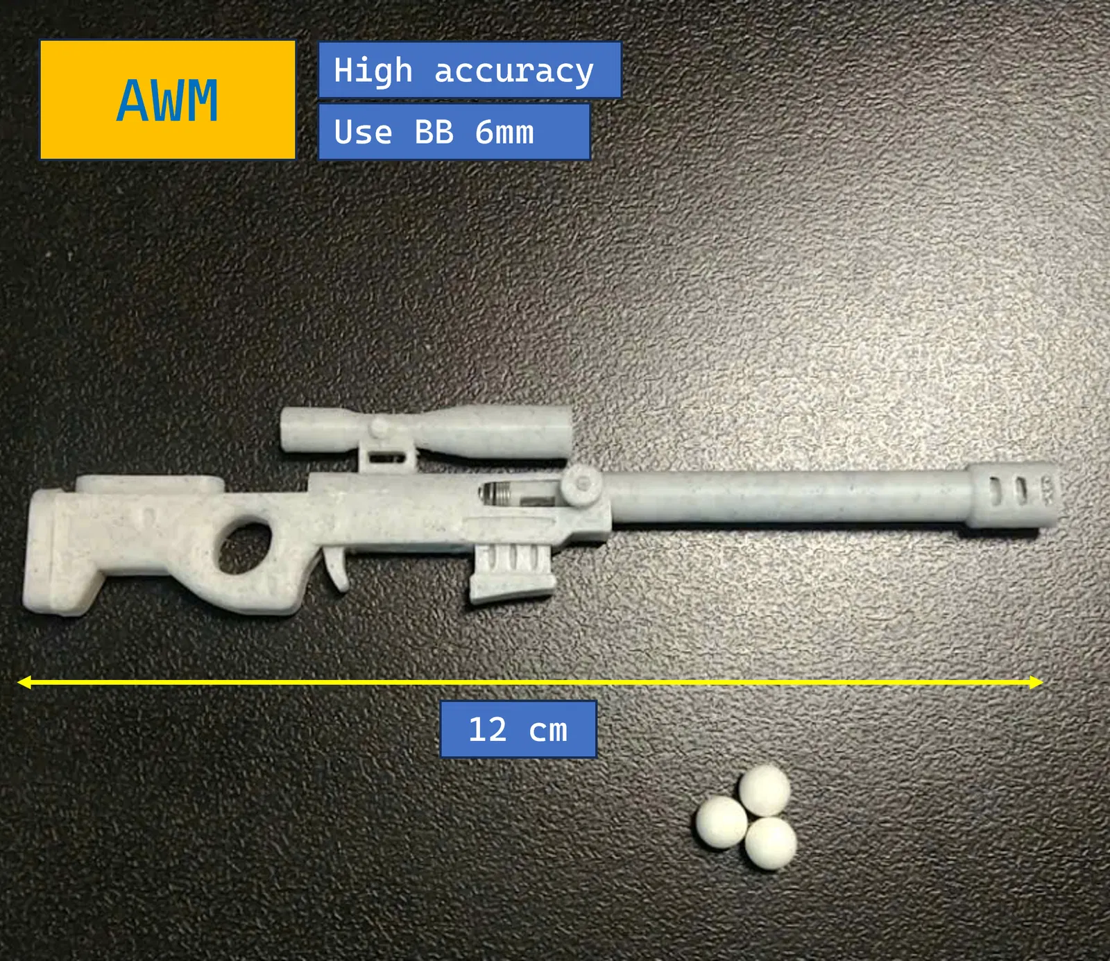 Phiên bản mini của súng AWM, nhỏ gọn xinh xắn, có thể làm móc khóa. Nhớ đọc kỹ hướng dẫn PDF đính kèm để có kết quả in tốt nhất nha! Model này có mấy chi tiết nhỏ, nhớ bật hoặc tắt support theo chỉ dẫn trong file in 3D nha!