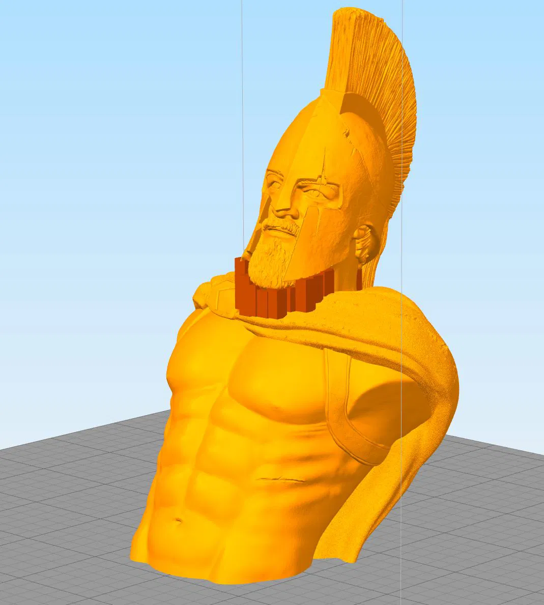 Tượng bán thân Leonidas phiên bản chiến đấu này được in làm 2 mảnh, chỉ cần ít hỗ trợ cho phần mũ và râu. Hỗ trợ Patreon để có thêm nhiều mẫu in 3D đẹp nha!