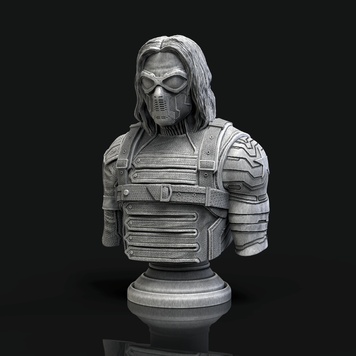 Bức tượng bán thân Winter Soldier, một nhân vật nổi tiếng từ Marvel. Phiên bản này có che mặt, tái hiện chi tiết vũ khí và các đường nét mạnh mẽ. Thích hợp cho fan Marvel và người yêu thích sưu tầm tượng.