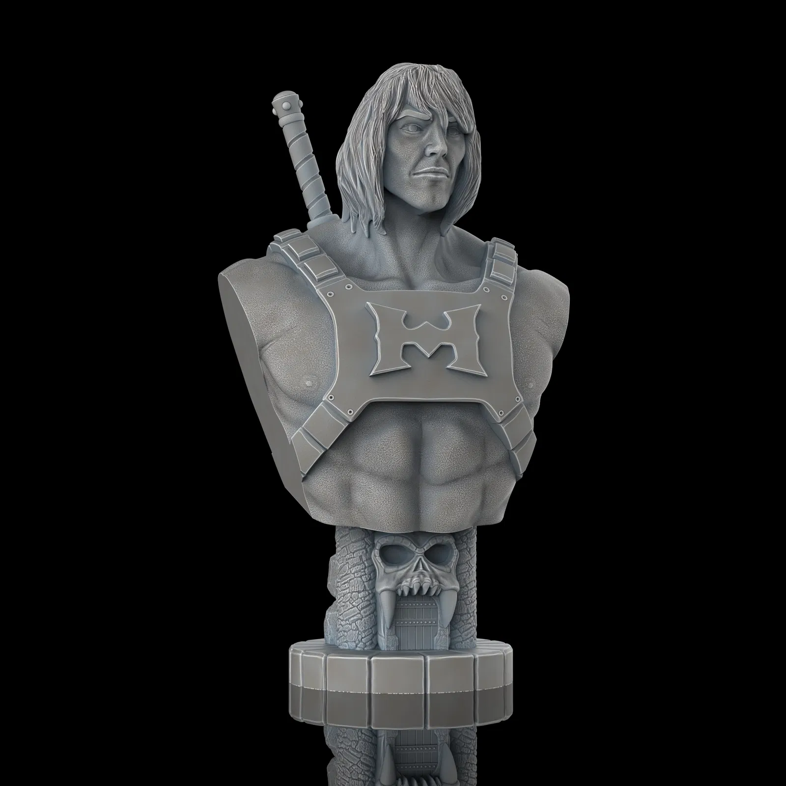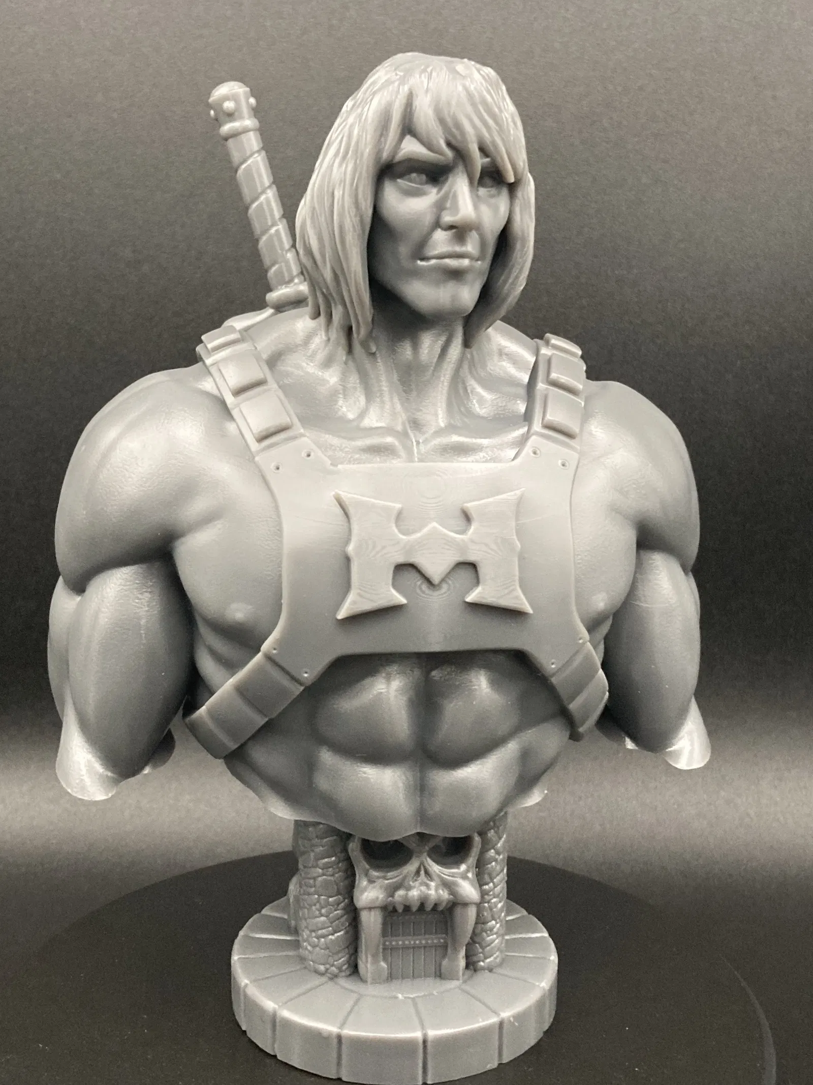 Một bản in tượng bán thân của nhân vật He-Man, một biểu tượng của vũ trụ Masters of the Universe. Tệp STL và LYs được hỗ trợ sẵn cho máy in resin đã có sẵn.