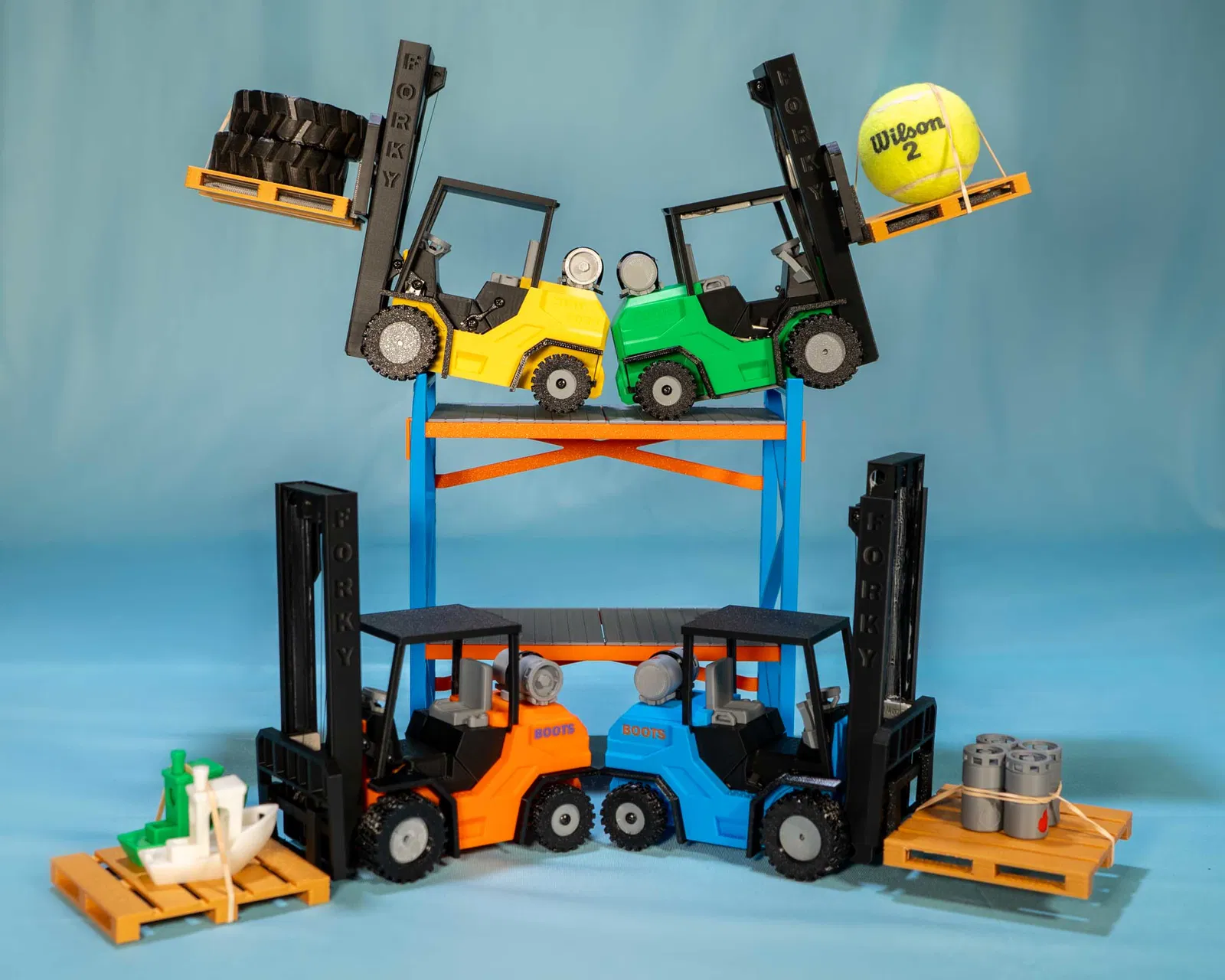 Chiếc xe Mini-Fork này dẫn động bằng bánh trước và lái bằng bánh sau, có một trụ nâng hoạt động hoàn toàn có thể nghiêng tới và lui. Tôi đã xây dựng dự án này để nó trở nên đơn giản nhất có thể và đóng vai trò là điểm khởi đầu cho những ai muốn tham gia vào các bản dựng RC in 3D này. Tôi đang sử dụng hệ thống nhà kho có thể tìm thấy tại đây do @Wimv tạo ra, anh ấy đã làm rất tốt! Tôi cũng đã làm một video về quá trình lắp ráp để bạn xem, có thể tìm thấy bên dưới.