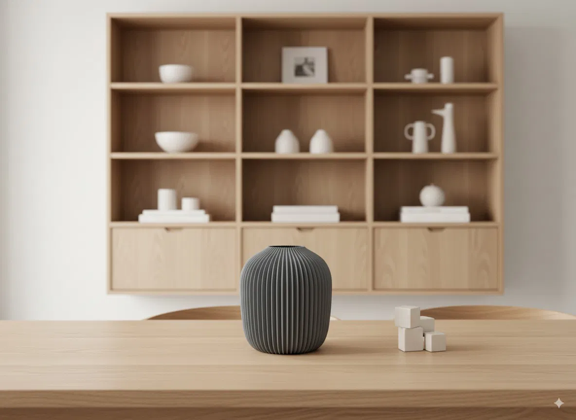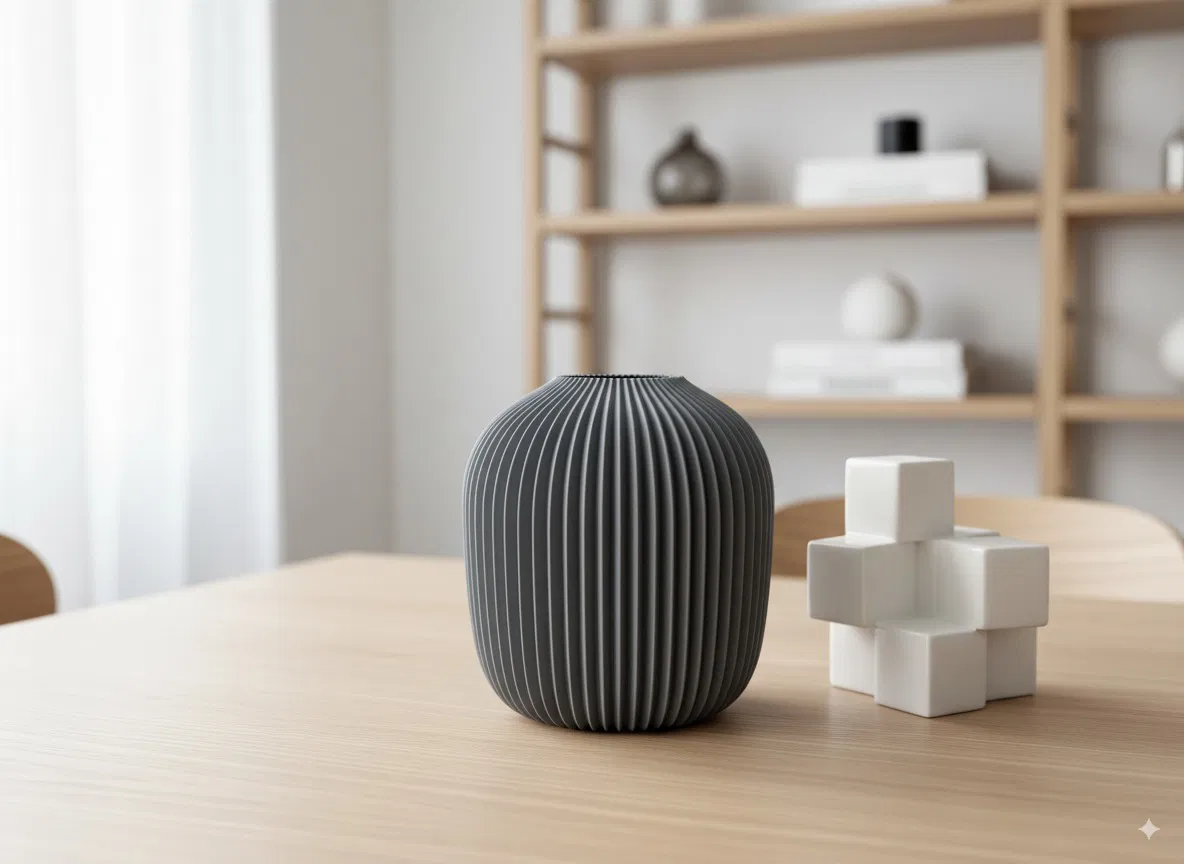 Bình hoa Elisa phong cách Bắc Âu hiện đại với thiết kế gân nổi tinh tế, hoàn hảo làm vật trang trí trung tâm hay chậu cây cho không gian nhà bạn. In 3D dễ dàng với PLA, không cần hỗ trợ.