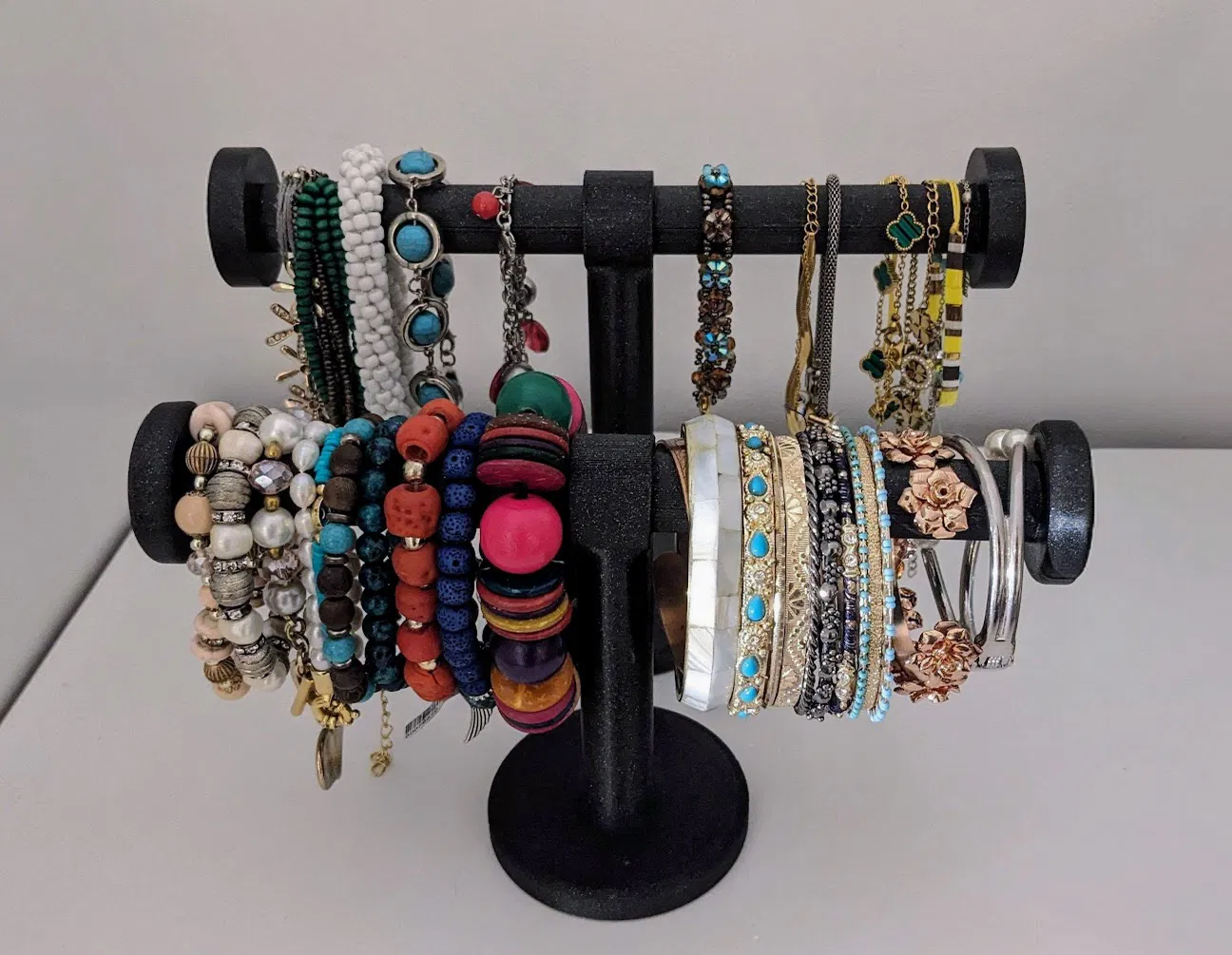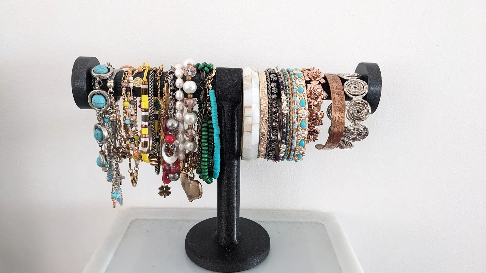 Giá đỡ vòng tay/phụ kiện dễ in và lắp ráp. Không cần keo hay bộ phận bổ sung, lại còn phù hợp với máy in khổ nhỏ. Phiên bản này gồm 4 bộ phận, đế có 2 chiều cao khác nhau để trưng bày vòng tay tốt hơn.