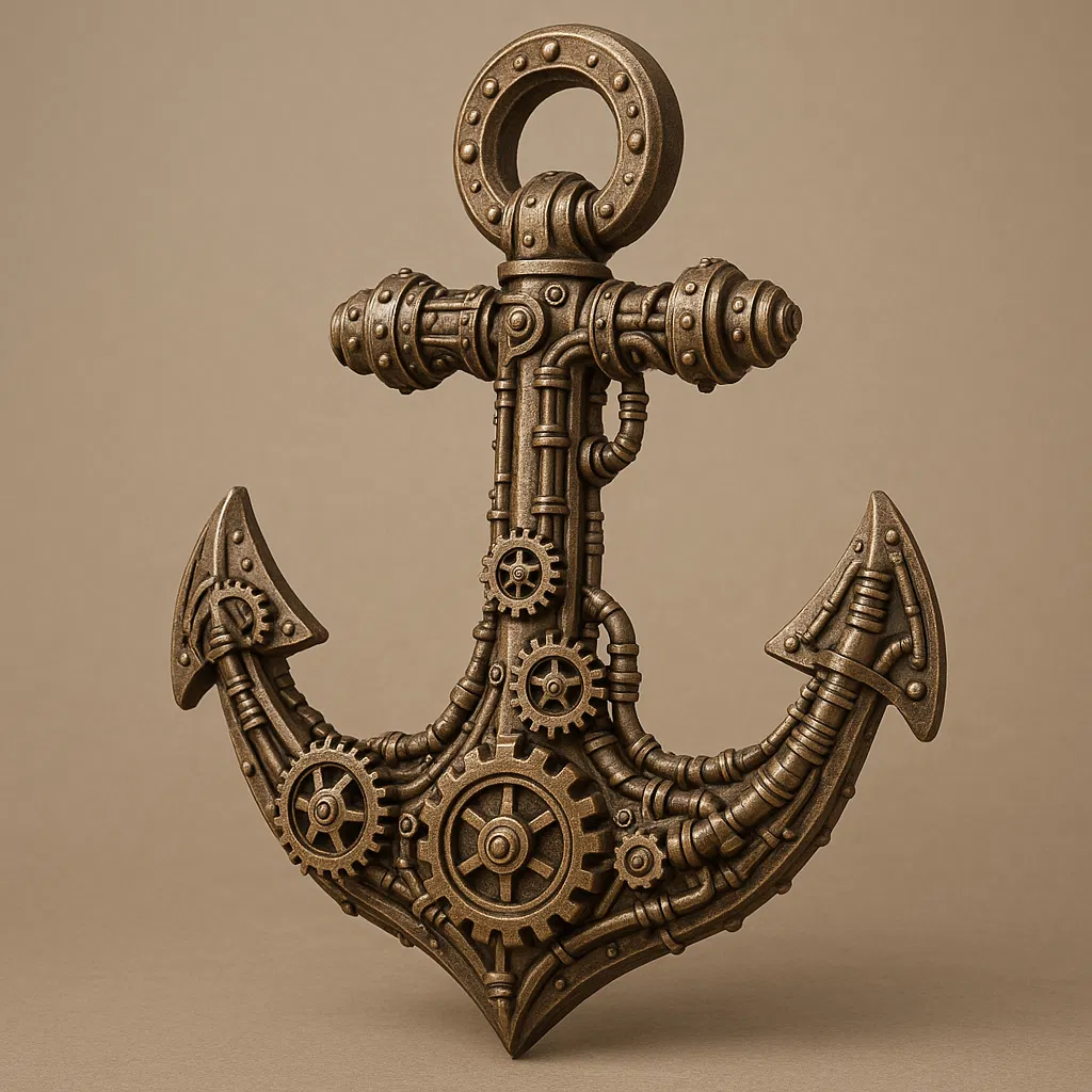 Chiếc mỏ neo mang phong cách steampunk, một tác phẩm điêu khắc độc đáo, hoàn hảo để trang trí hoặc làm quà tặng. Mô hình 3D chi tiết, dễ in ấn.