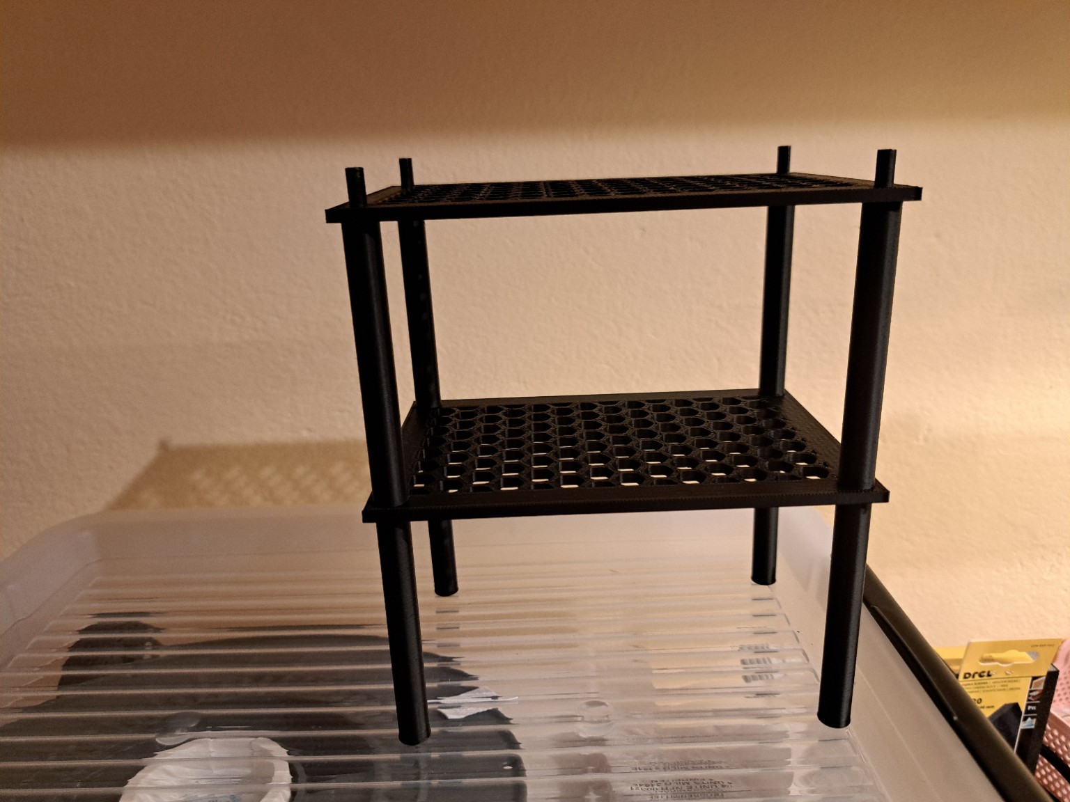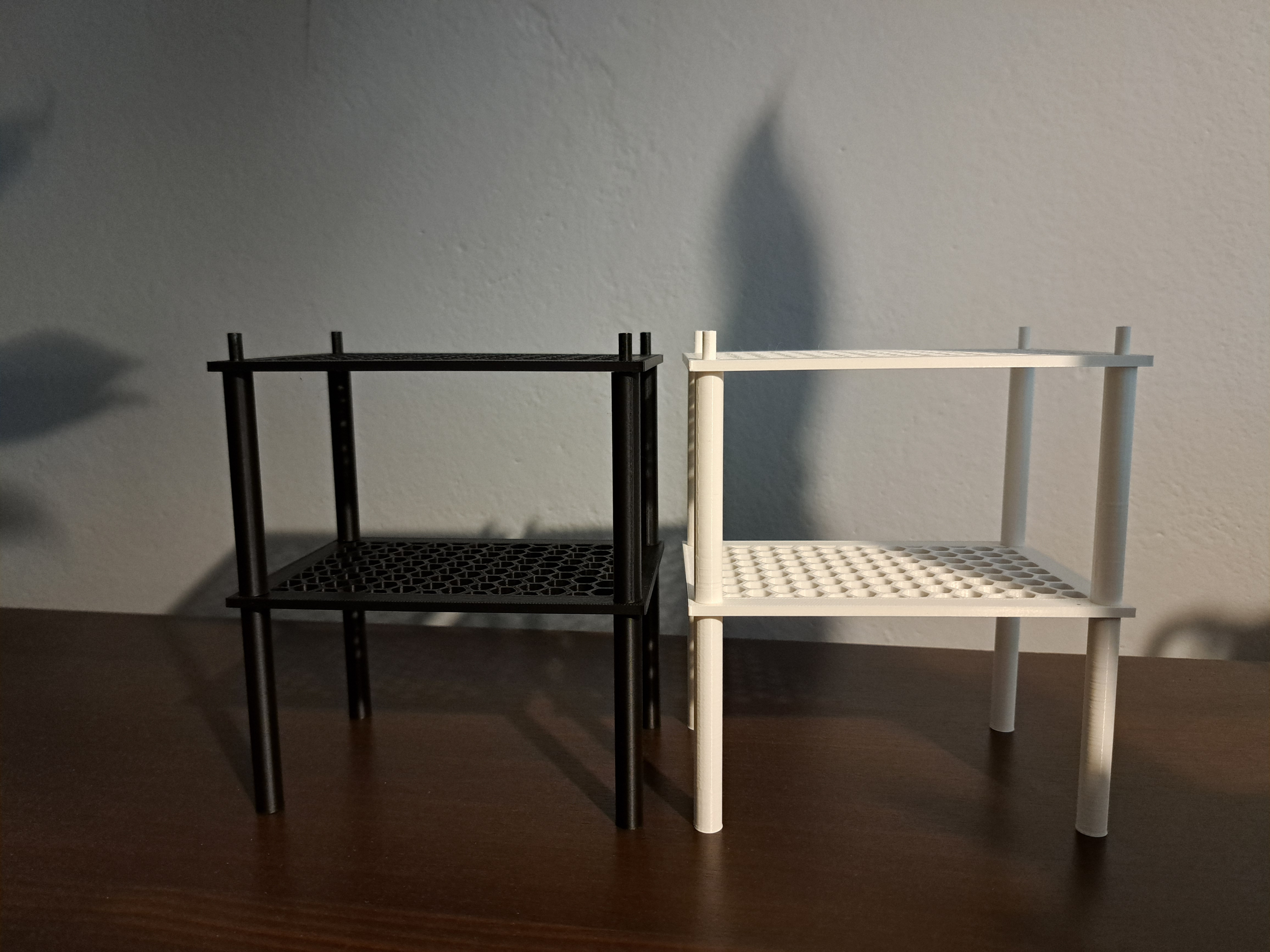 Kệ lưu trữ module vô cực Kích thước kệ từ 50×50 mm tới 200×200 mm Chiều cao chân kệ từ 50 mm tới 100 mm In không cần hỗ trợ PLA / PETG Mở rộng không giới hạn