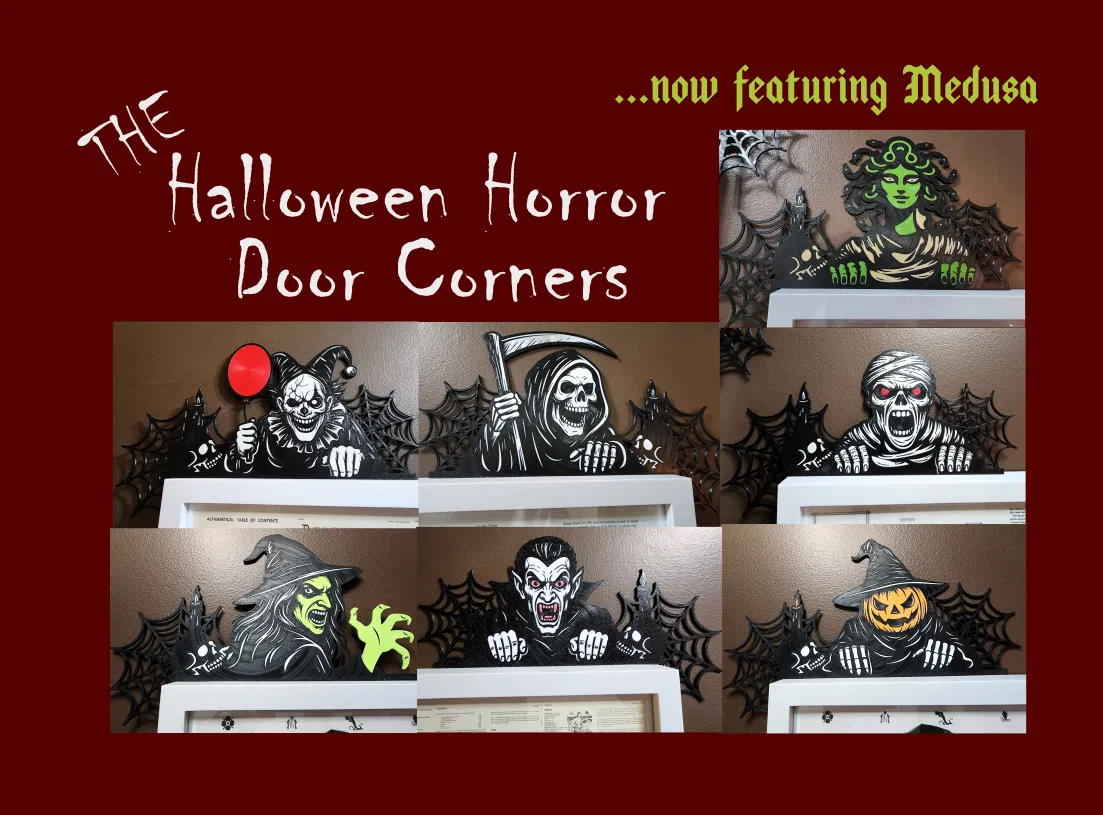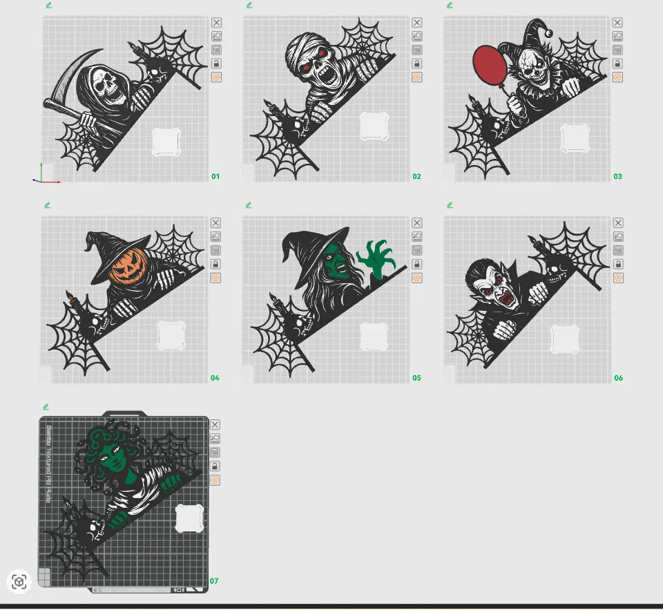 Đến mùa Halloween rồi đó! Trang trí góc cửa nhà bạn với một loạt các mô hình 3D kinh dị, đa sắc màu hoặc đơn sắc. Dễ in với cài đặt slicer phù hợp.