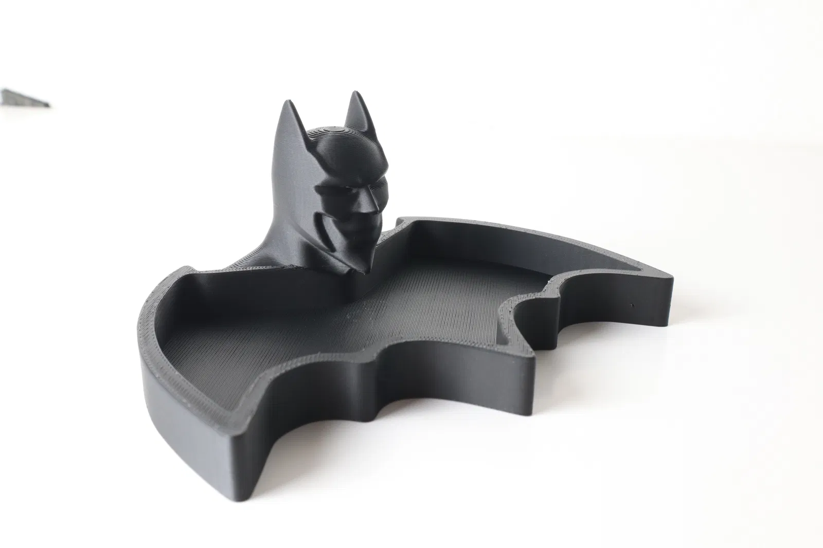 Giải phóng Hiệp Sĩ Bóng Đêm lên bàn làm việc của bạn với món đồ tổ chức lấy cảm hứng từ Batman vừa sành điệu vừa hữu dụng này. Được thiết kế theo hình biểu tượng dơi đặc trưng và có hình bán thân đầy uy lực của Hiệp Sĩ Mũ Trùm Đầu, khay in 3D này rất lý tưởng để đựng chìa khóa, tiền xu, USB hoặc các vật dụng nhỏ khác.