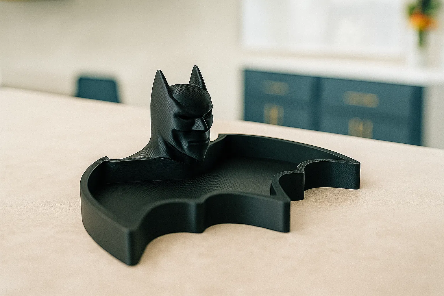 Mang Hiệp Sĩ Bóng Đêm đến bàn làm việc của bạn với khay đựng đồ hình biểu tượng dơi độc đáo này. Hoàn hảo để giữ chìa khóa, tiền xu và các vật dụng nhỏ khác, chiếc khay in 3D này là sự kết hợp hoàn hảo giữa phong cách và chức năng cho người hâm mộ Batman.
