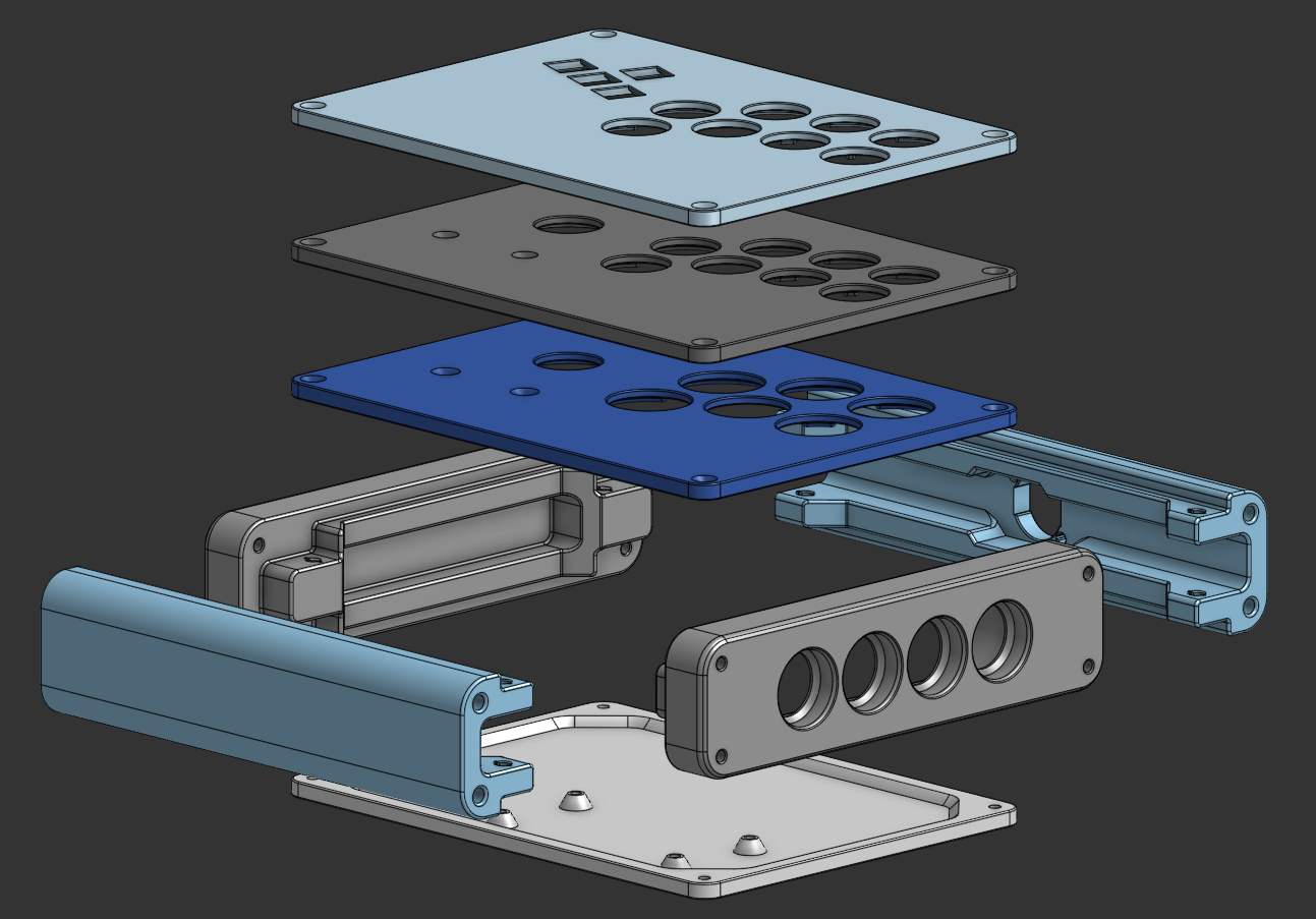 BẢNG NÚT. Có 3 tùy chọn: 6 nút, 8 nút và WASD với 8 nút. Chúng không dựa trực tiếp trên bố cục hiện có, nhưng cuối cùng chúng cũng trông giống hoặc giống với bố cục Sega2P. Tuy nhiên, bố cục của tôi sẽ hỗ trợ kích thước lớn hơn của các nút vặn Sanwa. Giá đỡ joystick được làm cho tấm gắn Sanwa JLF – tôi không thể đảm bảo các joystick khác sẽ vừa.
