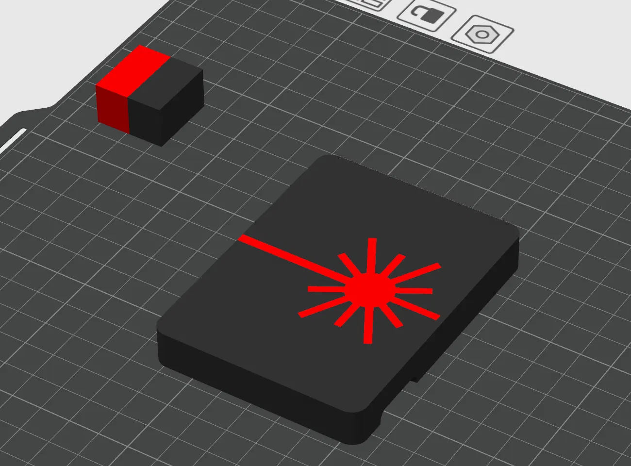 Cái nắp hộp có hình cái ký hiệu cảnh báo laser mà tui thấy ưng bụng lắm. Cái này là ý tưởng in ra riêng rồi dán vô, cũng có bản in chung luôn cho mấy bạn có xài AMS gì đó, với bản không có cái phần khía vô đó.