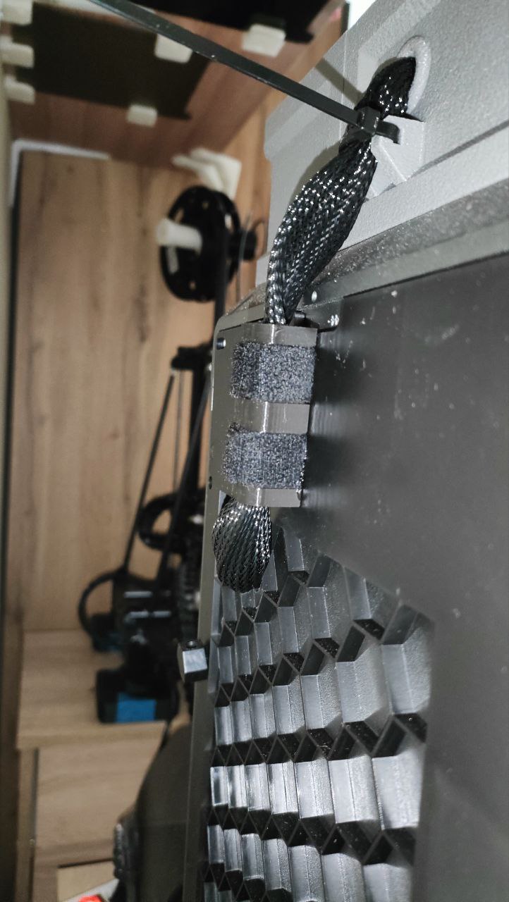 Cập nhật 2025/07/29: Thêm một khe nhỏ để quản lý cáp. Tôi đã dùng Velcro và keo siêu dính gắn vào tấm phía sau.