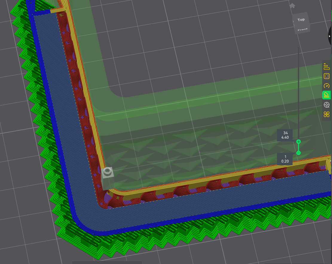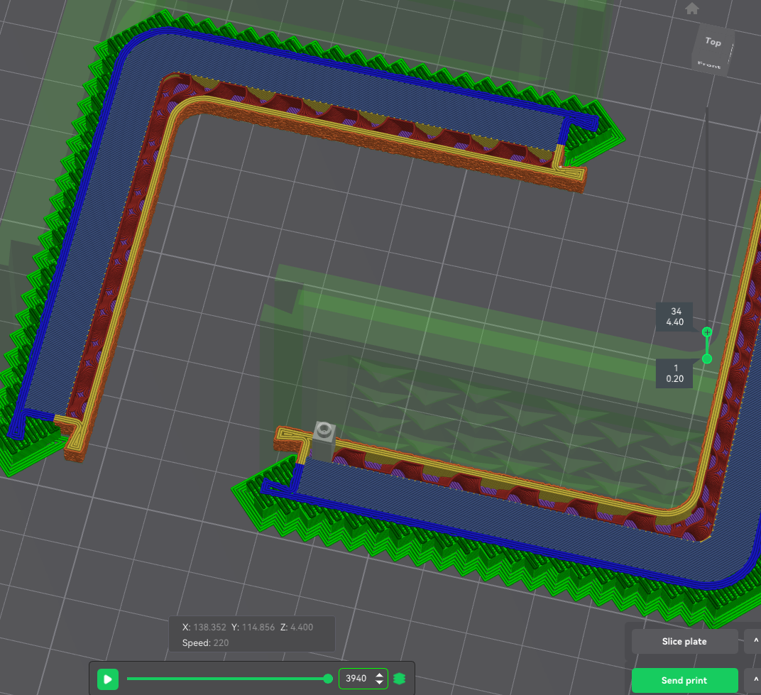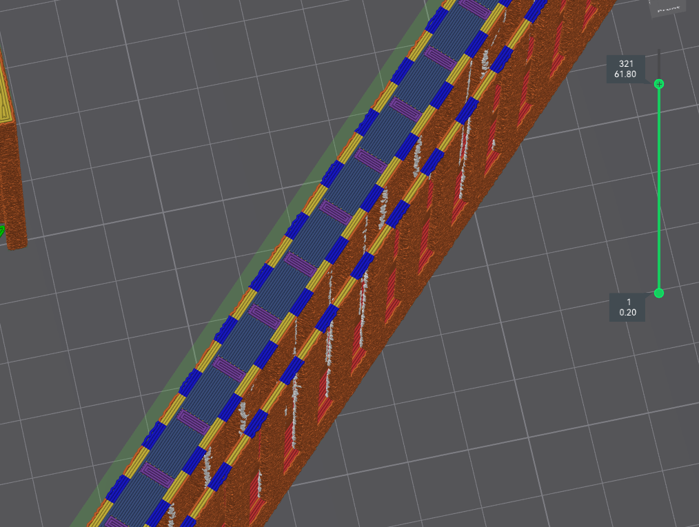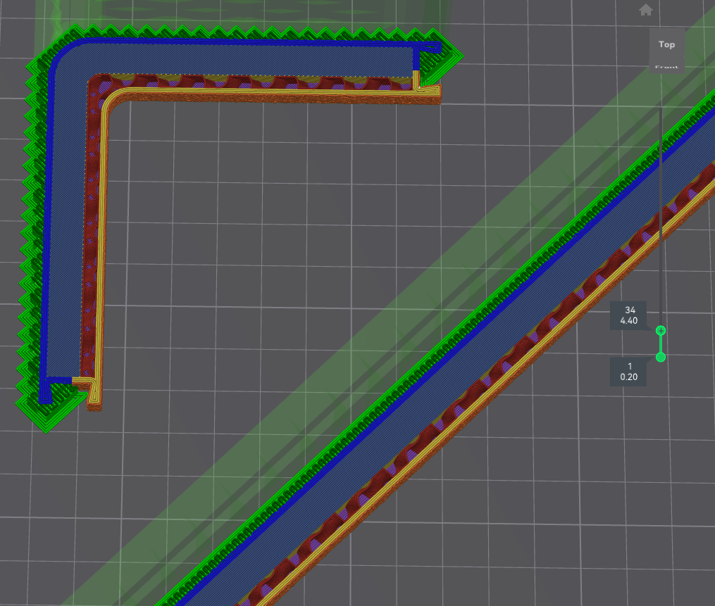 Quan trọng là cách bạn đặt bản in hoặc ở góc nào các bộ phận hỗ trợ hoặc cầu nối được in. Tôi cố gắng giữ các bộ phận hỗ trợ được in ở góc 45 độ so với lớp đầu tiên được in trên bộ phận hỗ trợ. Xem hình. Đối với các bộ phận có lỗ thông hơi, tốt hơn là in các cầu nối thông gió phía trước thành các đường thẳng.