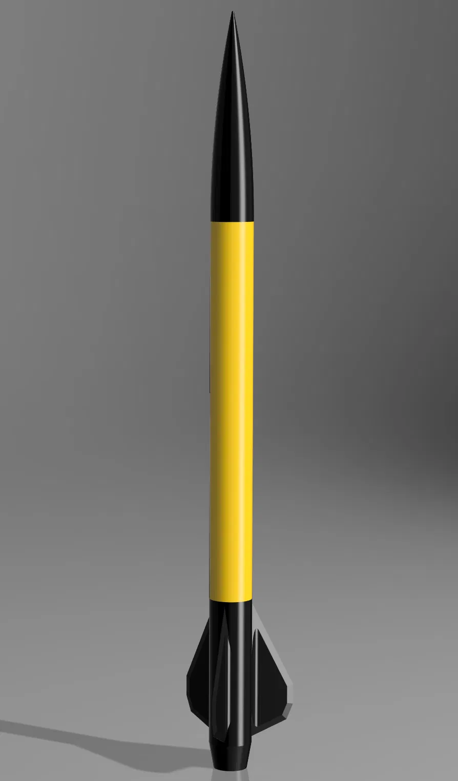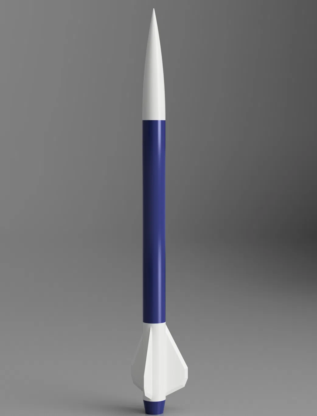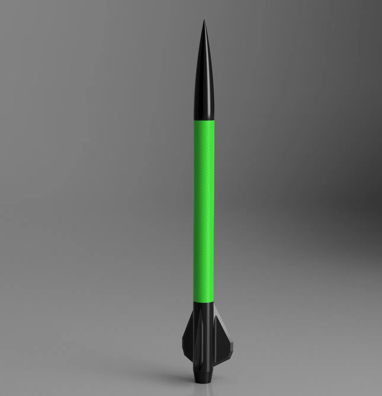 Chiếc tên lửa này có ba cấu hình thiết kế khác nhau dựa trên nhiều tháng nghiên cứu và phát triển, cuối cùng cho ra đời một chiếc flyer tuyệt vời. Ngoài ống thân và ống lót động cơ, tên lửa này được in 3D hoàn chỉnh (cần/khuyến nghị một số phụ kiện).