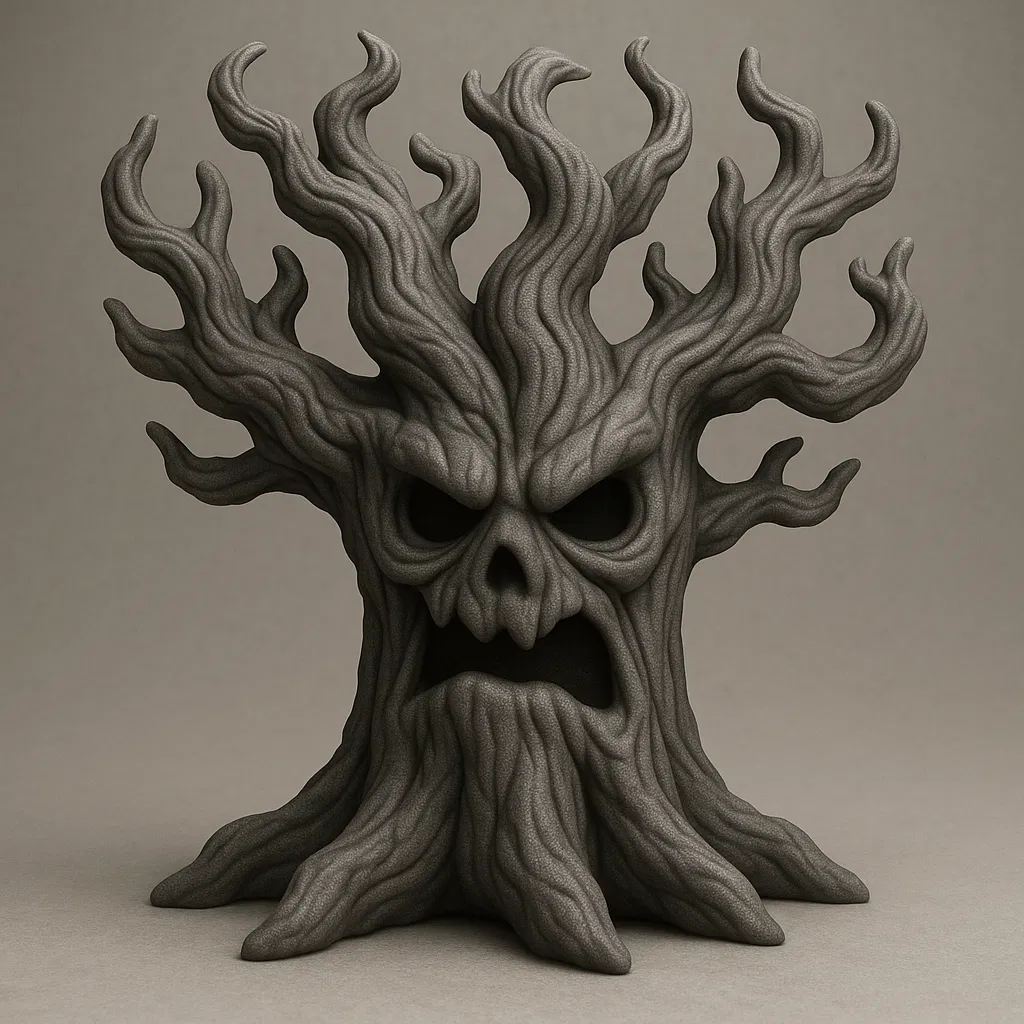 Một cây halloween cách điệu đầy rùng rợn với cành cây xoắn xuýt, đôi mắt trống rỗng và chân đế rộng rãi giúp đứng vững. Thích hợp cho mùa lễ hội ma quái hoặc trang trí nhà cửa.