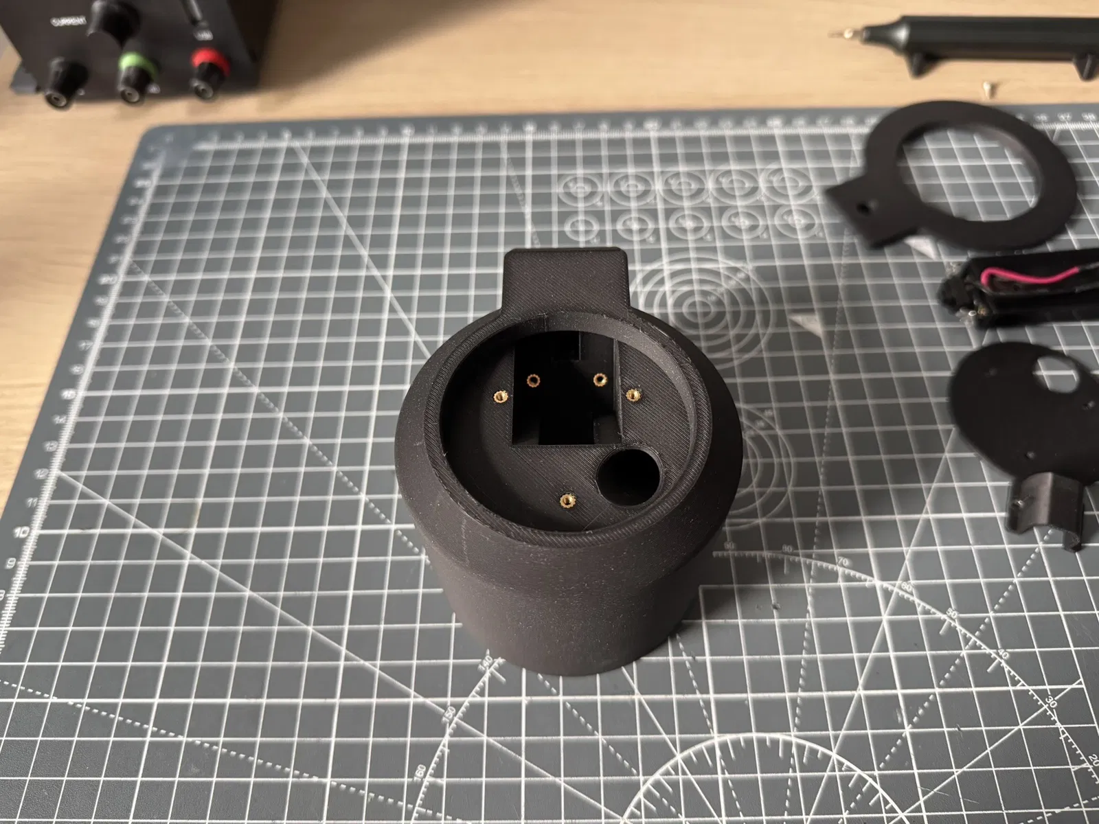 - Chèn ốc nhiệt vào Phễu như hình (nếu không muốn dùng ốc nhiệt thì in phễu với ren có sẵn)