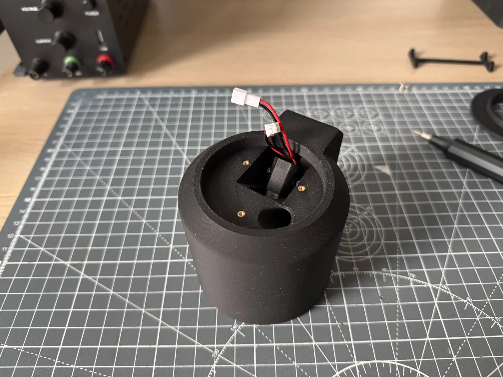 - Hàn đầu nối PH2.0 (hoặc loại nào bồ thích) vào hộp pin và động cơ, nhớ canh đúng chiều phân cực để động cơ quay đúng chiều (ngược chiều kim đồng hồ khi nhìn vào đầu trục).