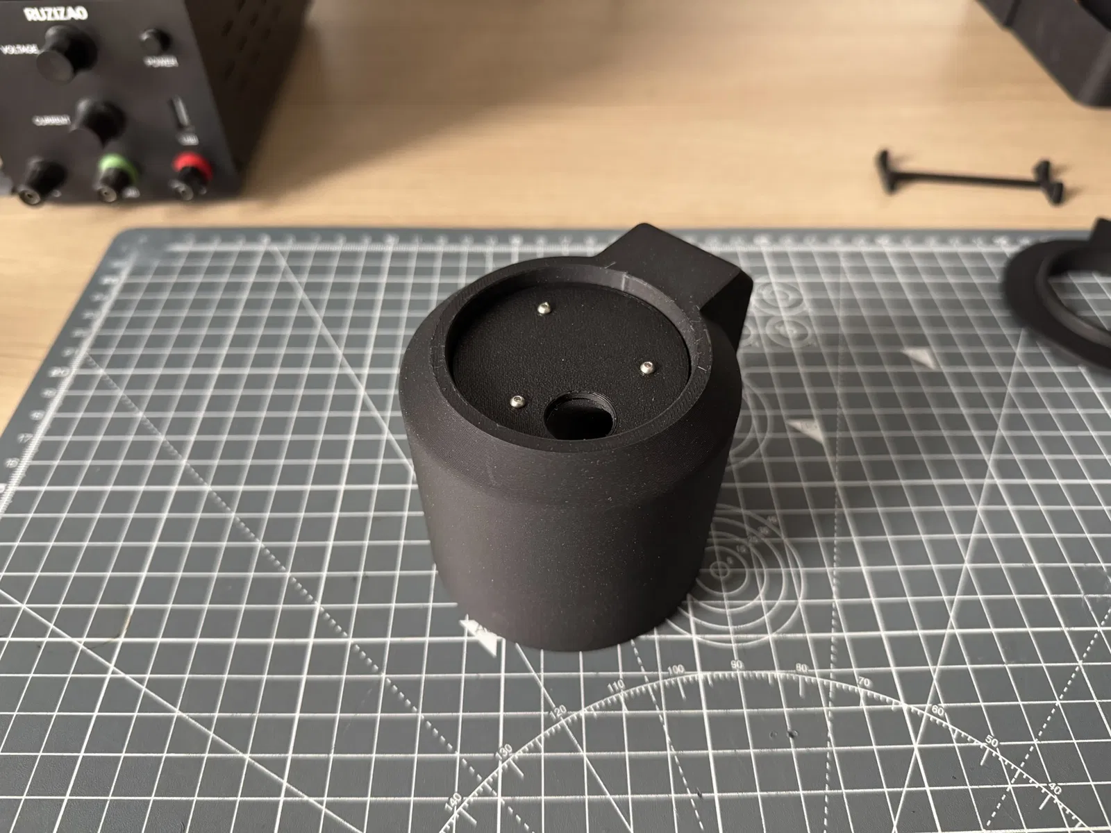 - Đặt hộp pin vào khe, cho đầu nối đi qua lỗ ở dưới đáy (có thể cần dùng kềm/nhíp).