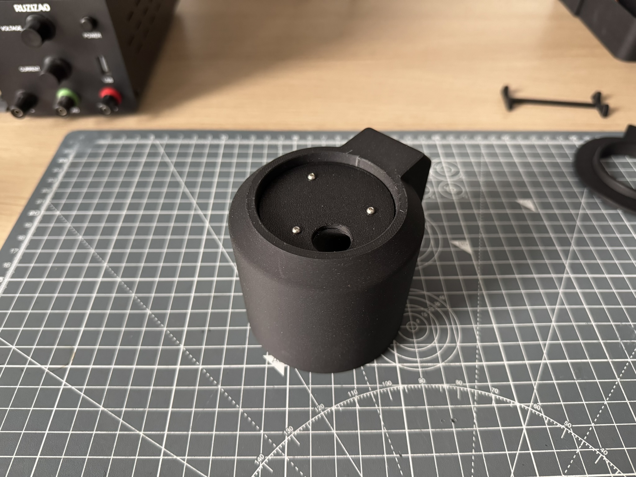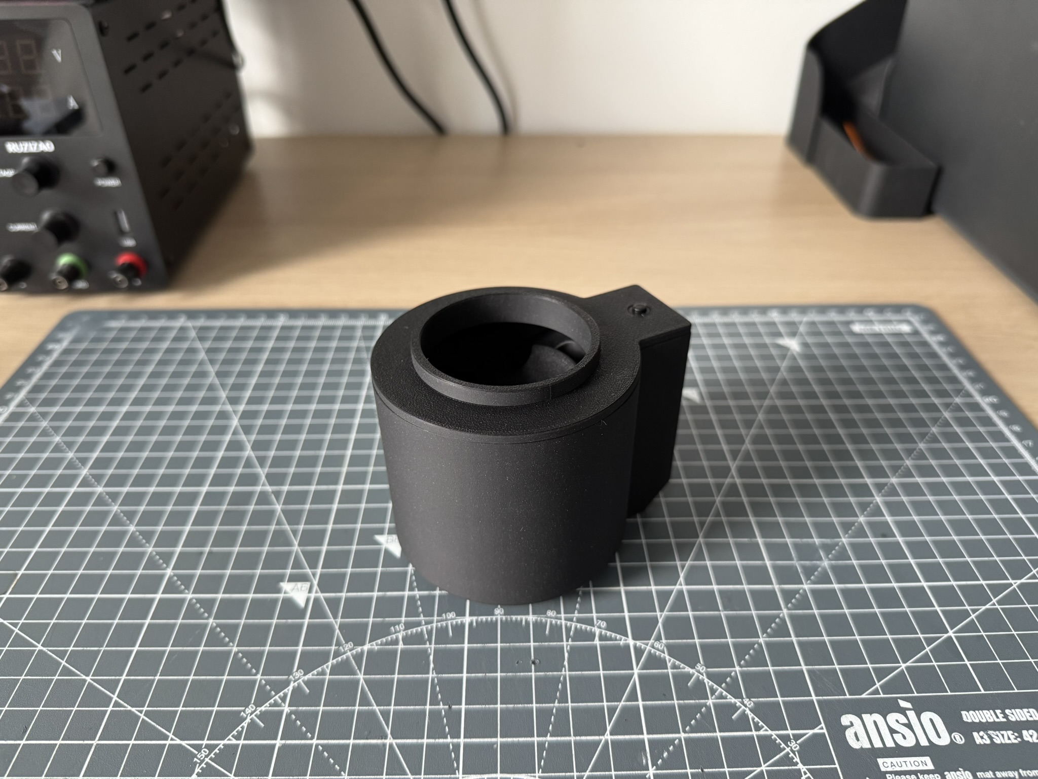 Cập nhật 01/09/25: đã làm bo góc bên trong phễu dày hơn để bề mặt cấp liệu dốc hơn vào đĩa feeder.