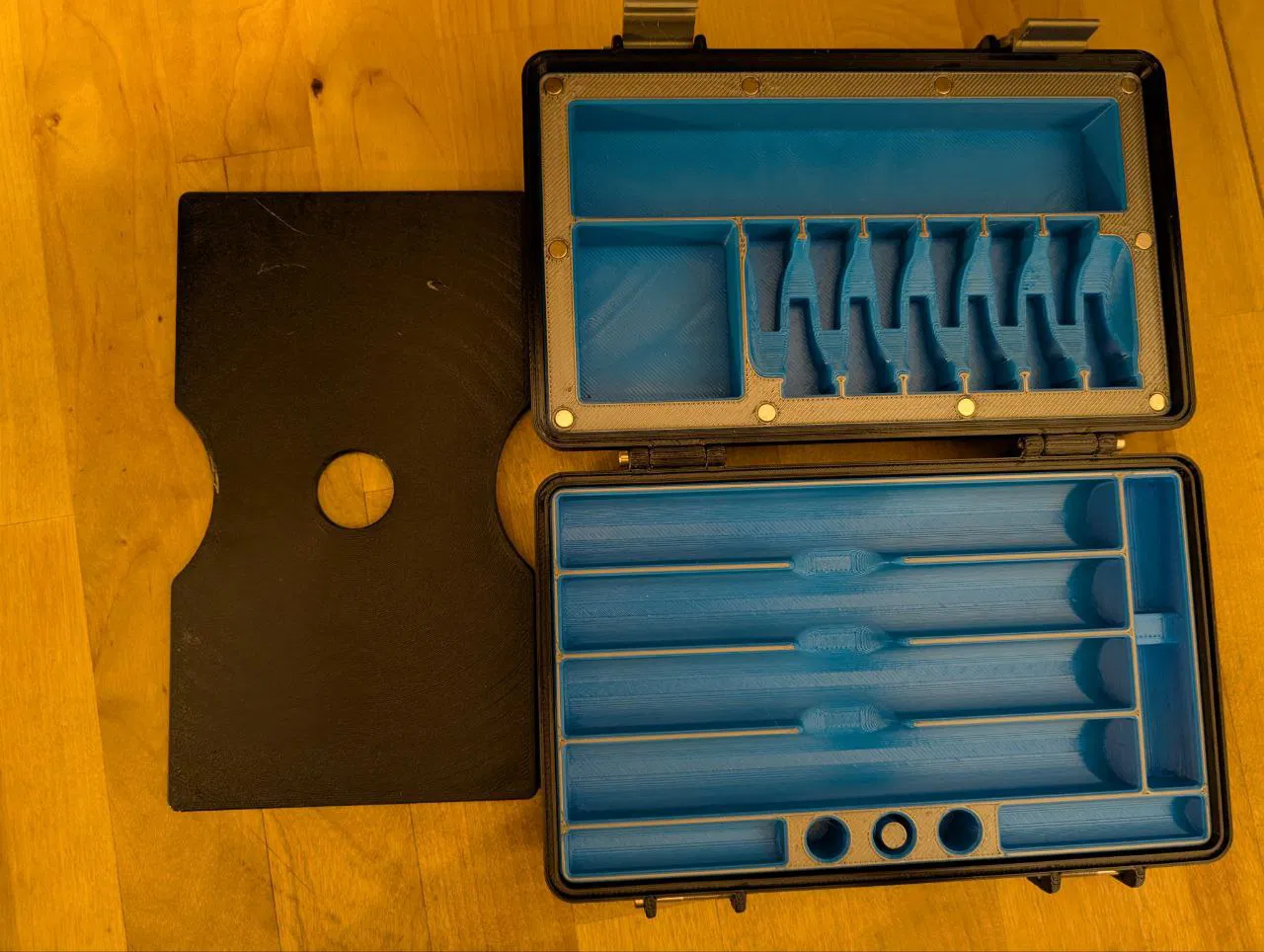 Mặt nắp được cố định bằng nam châm tròn 6×3 mm, loại nam châm này giữ nắp chắc chắn nhưng vẫn dễ dàng tháo ra.