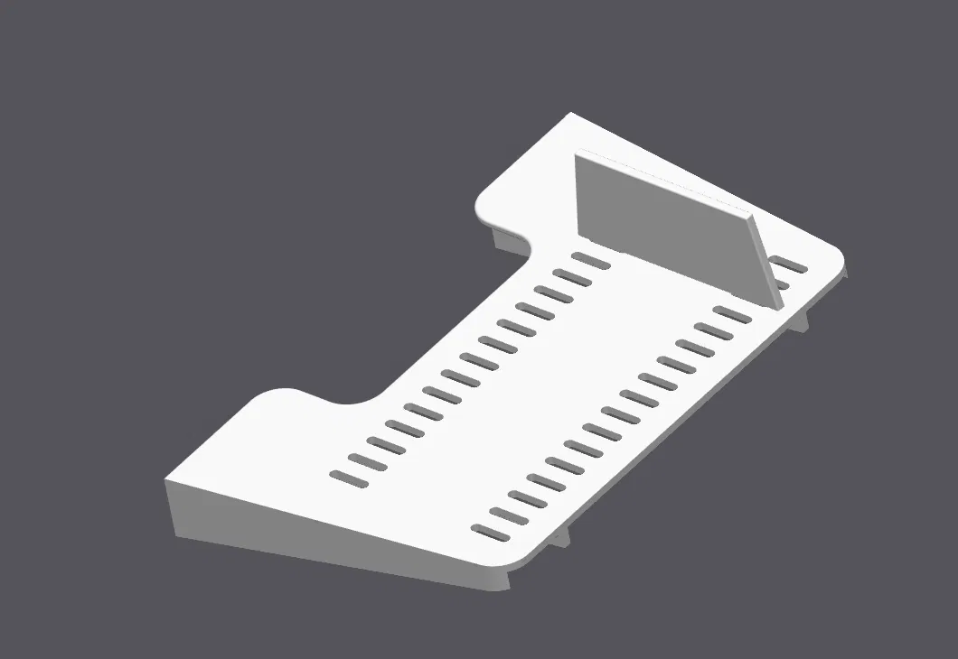 Kệ nhỏ với các rãnh chia ngăn cho hộc sạc Qi trên Chevy Traverse Gen 3 (2024-2026). Giữ nguyên khả năng truy cập cổng USB/12V. Có thể tùy chỉnh không gian chứa đồ.