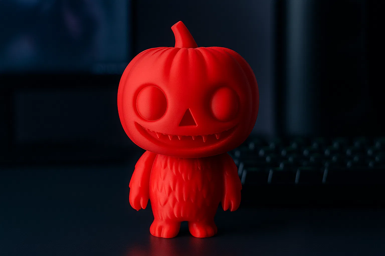 Mang không khí ma quái mà dễ thương đến bàn làm việc của bạn nha! Sinh vật đầu bí ngô lấy cảm hứng từ Labu bu này pha trộn nét quyến rũ của Halloween với thẩm mỹ đồ chơi thiết kế: đầu bí ngô tròn trịa, nụ cười ranh mãnh và thân hình nhỏ nhắn, mượt mà in ra đẹp tuyệt.