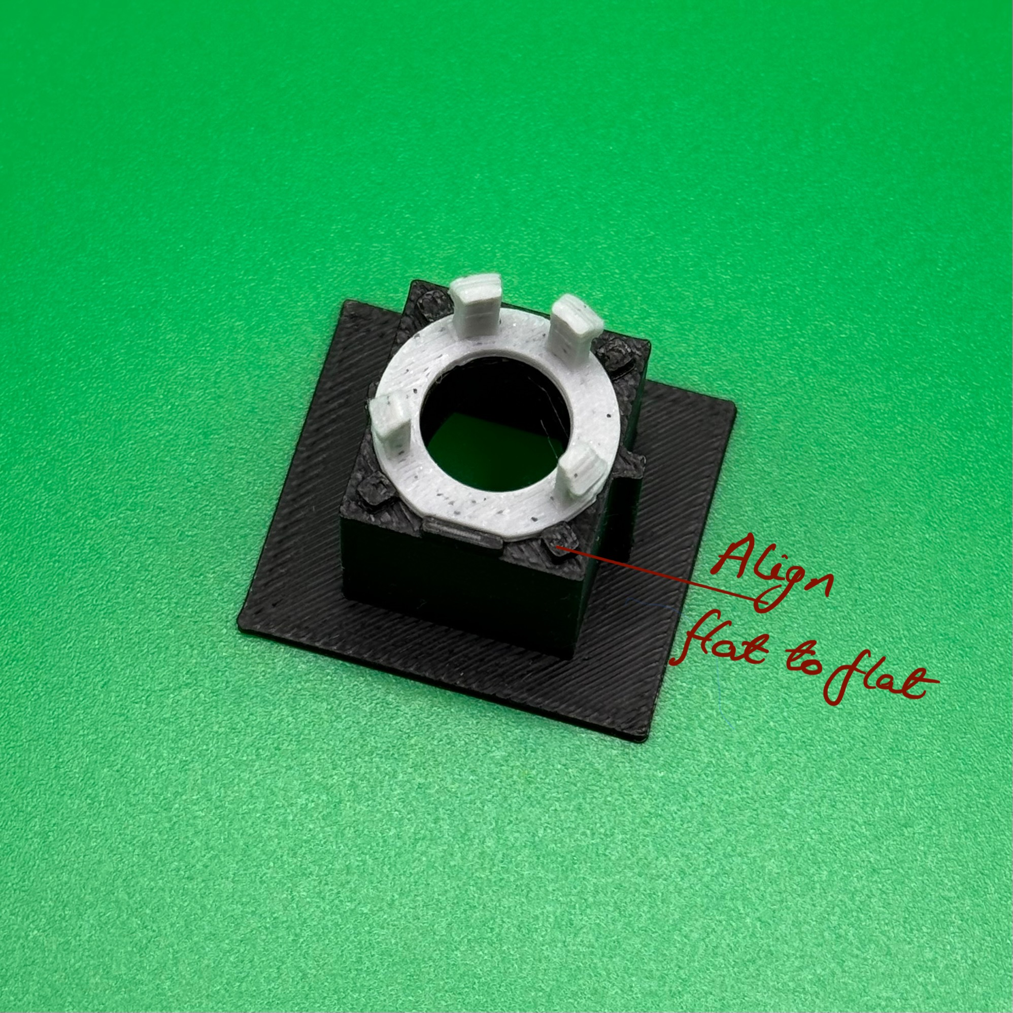 Bước 3: Đặt vòng giữ đầu lên khuôn lắp ráp. Căn chỉnh phần phẳng trên vòng giữ đầu với phần phẳng trên khuôn