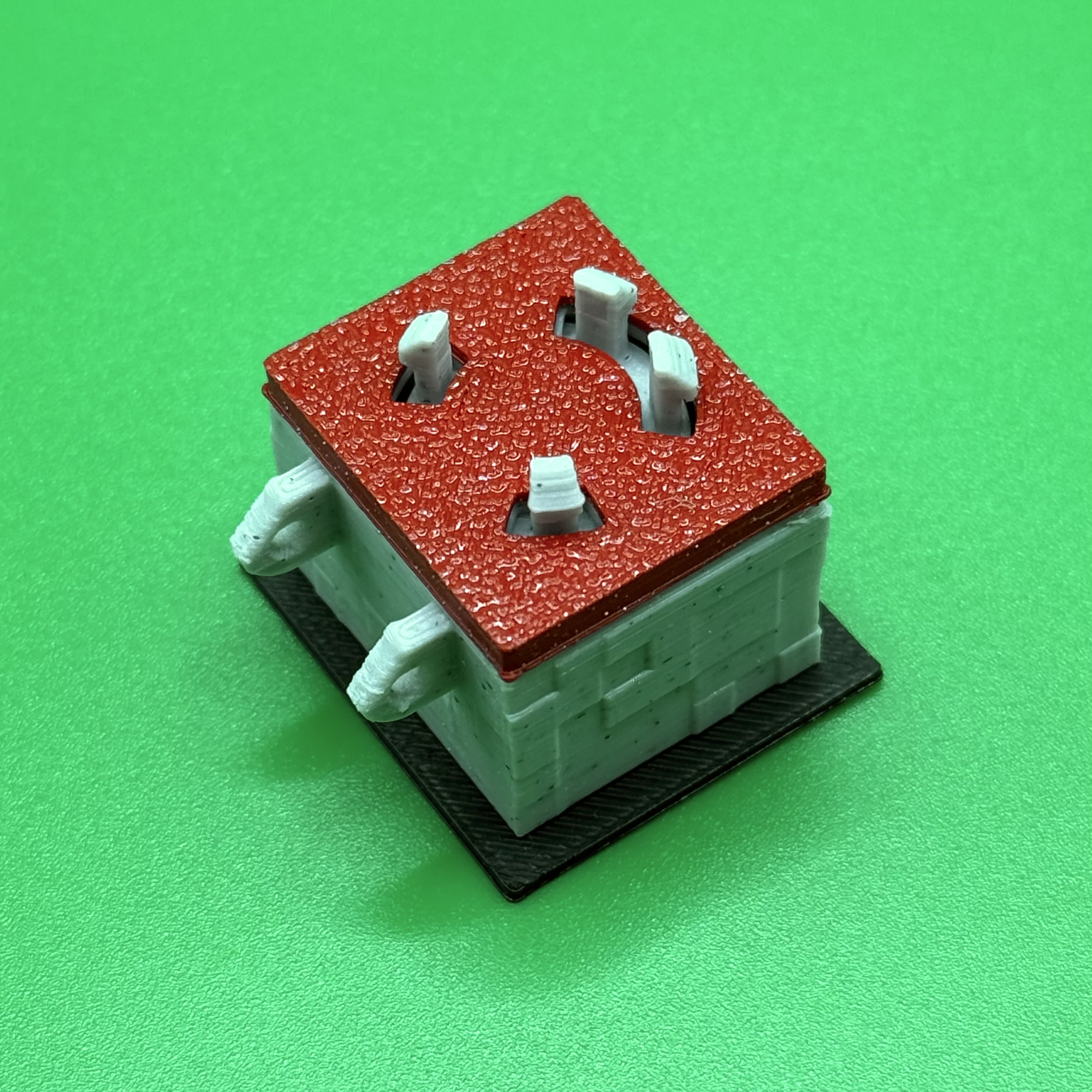 Mô hình clicker chó/sói Minecraft này xài một cái switch bàn phím Cherry MX, hoặc tương tự (tui đang xài cái switch Outemu Clicky Green rẻ tiền mua trên Aliexpress), có chân tay cử động được. Phần đầu có thể ấn vô để click (nếu bạn xài switch có tiếng click).