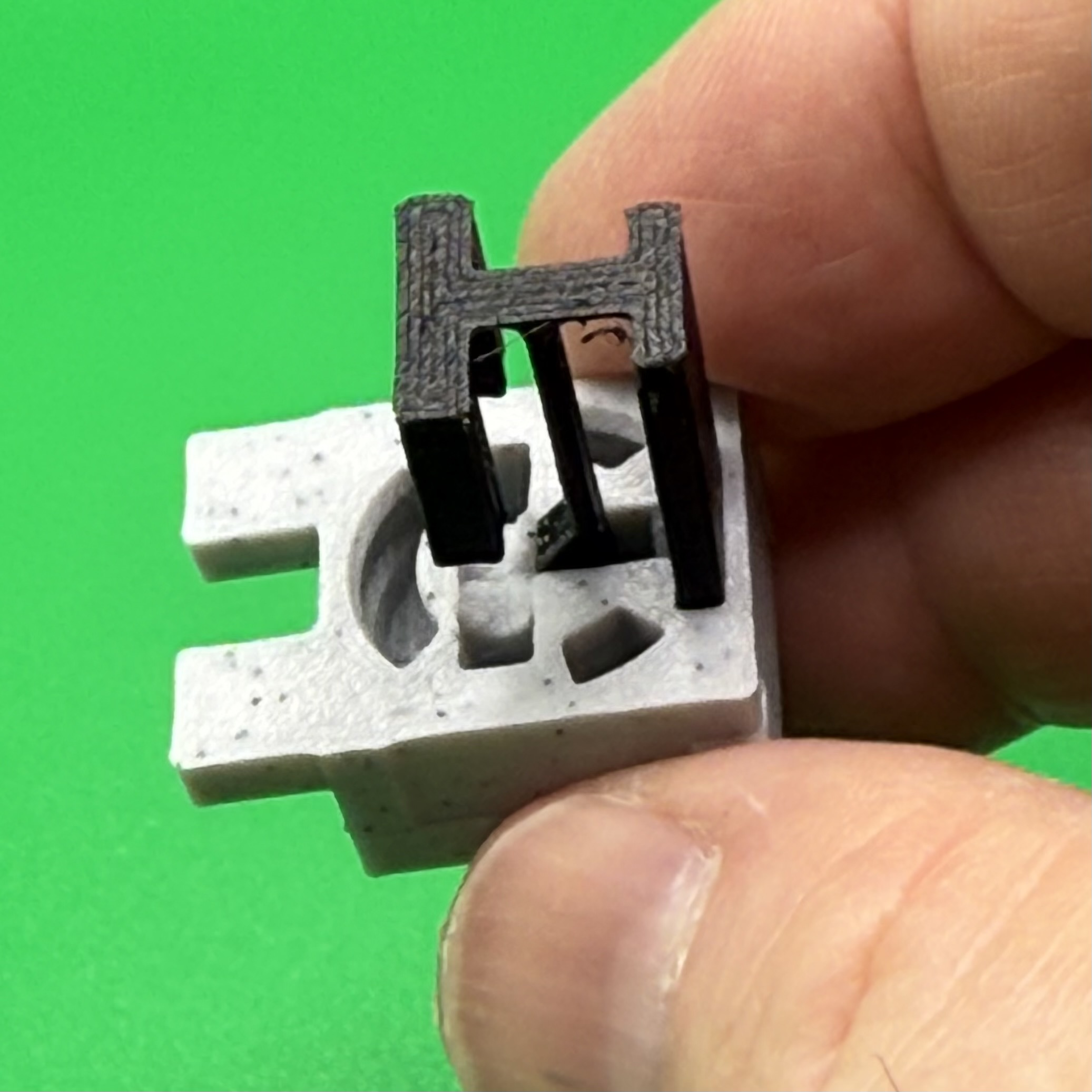 Tui đã làm gãy kẹp. Nếu điều này xảy ra, bất kỳ mảnh nào còn sót lại trong phần đầu có thể được gỡ ra bằng nhíp hoặc kìm mũi nhọn, và bạn có thể in lại một kẹp giữ đầu mới.