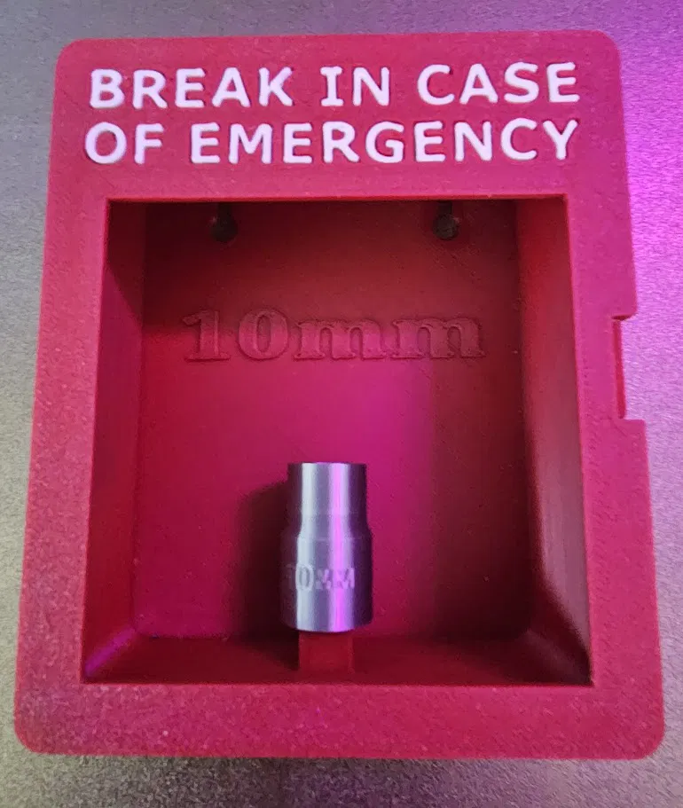 Thêm trụ ổ cắm 3/8 và chữ 10mm ở tường sau cho hộp đựng khẩn cấp. Hoàn hảo để lưu trữ an toàn các vật dụng quan trọng và luôn sẵn sàng khi cần thiết.
